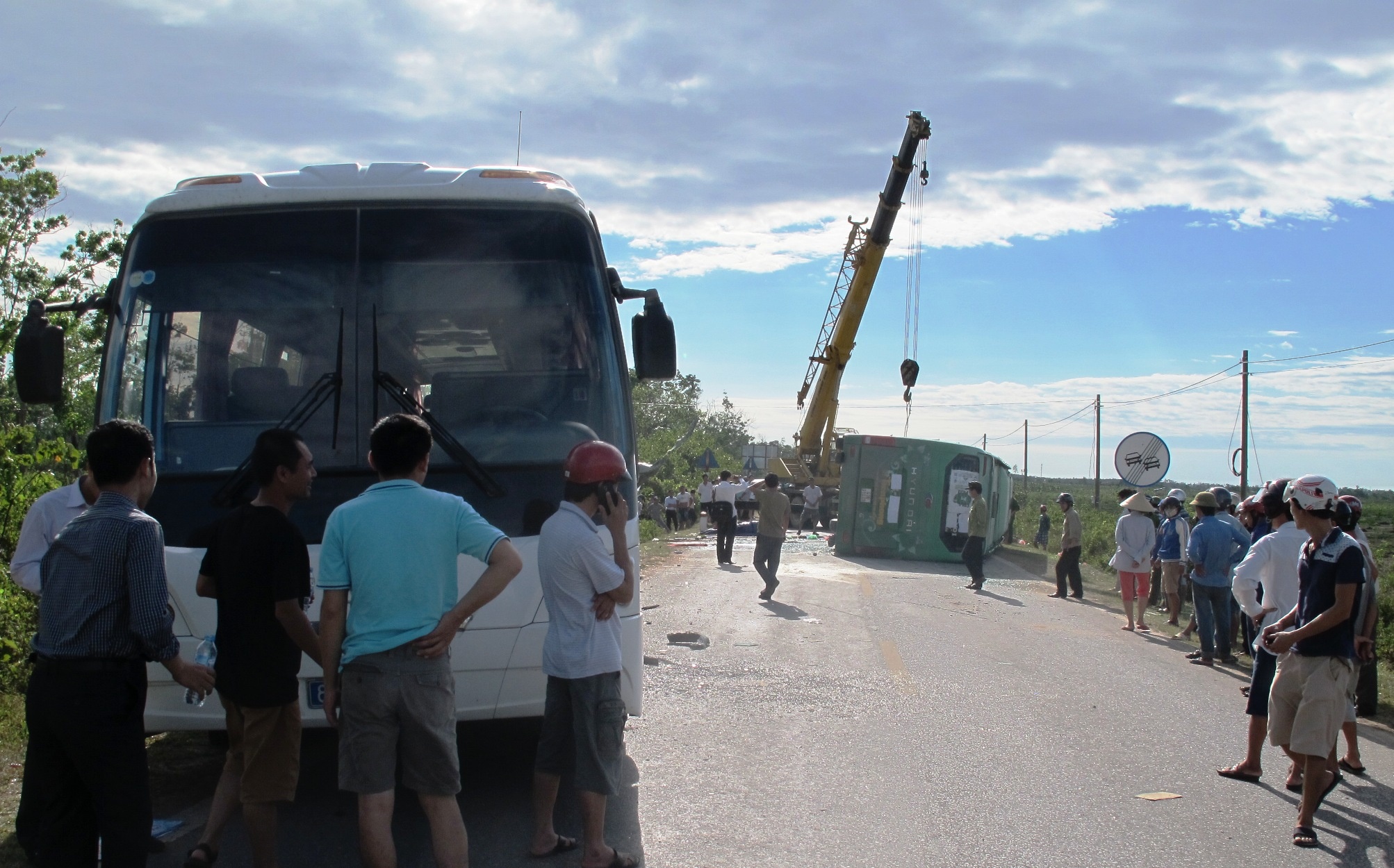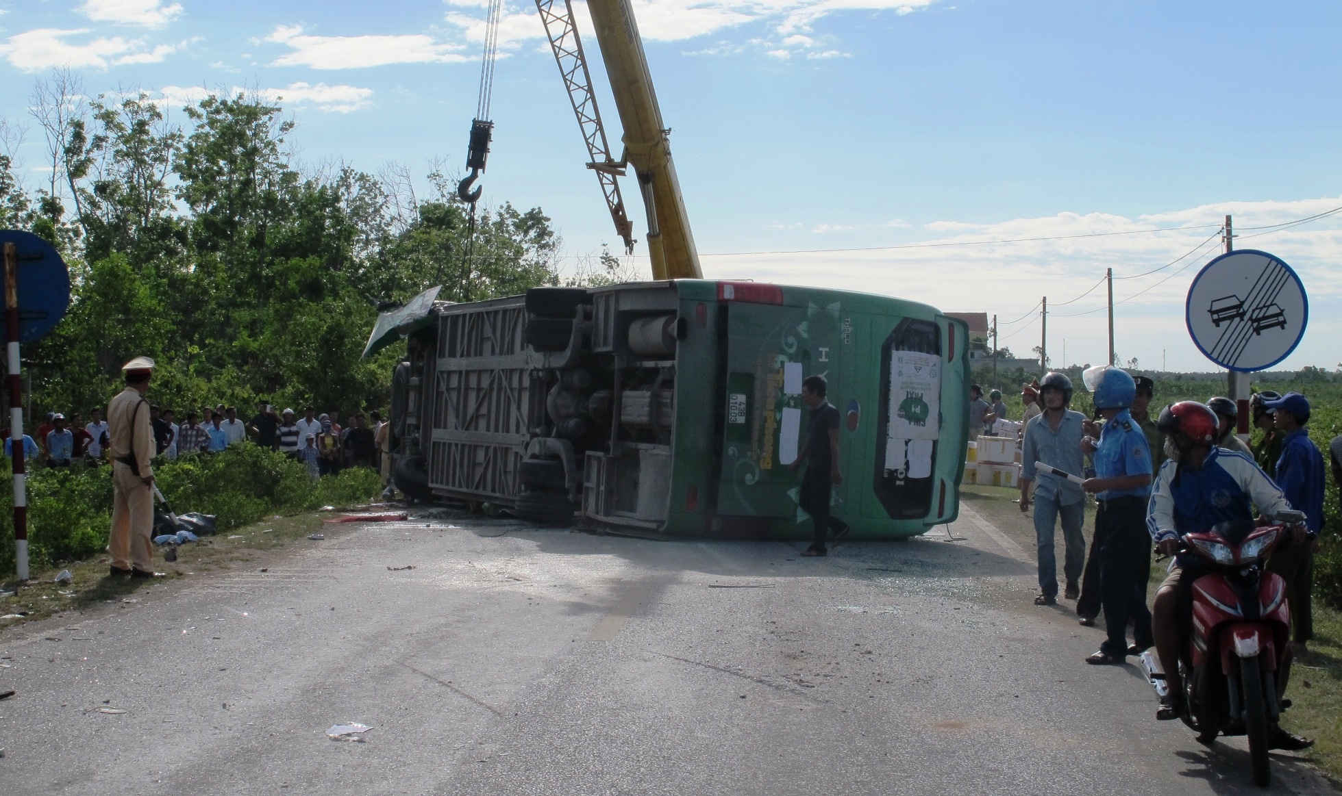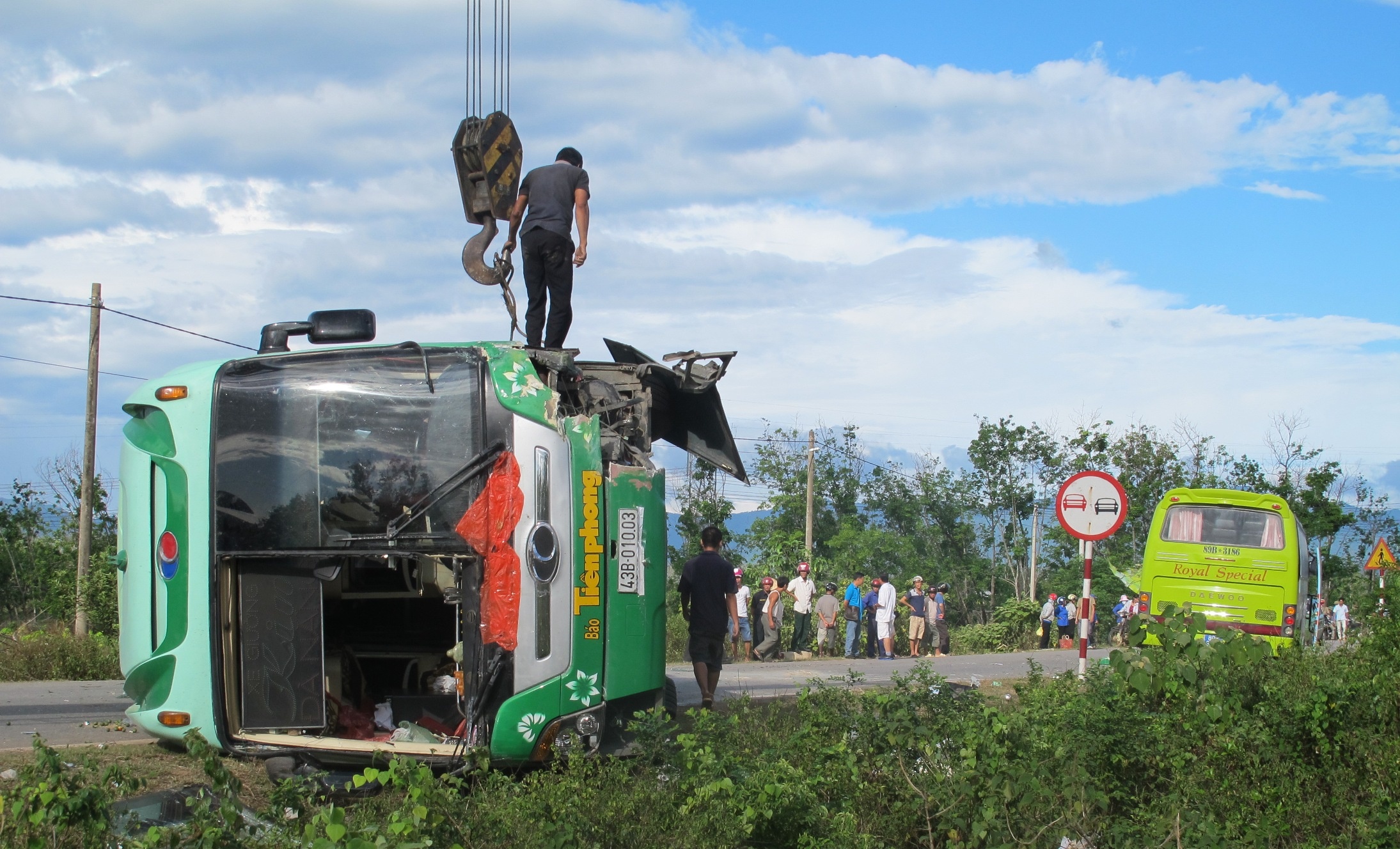 Xe khách lật chắn ngang đường, hàng chục người thoát chết