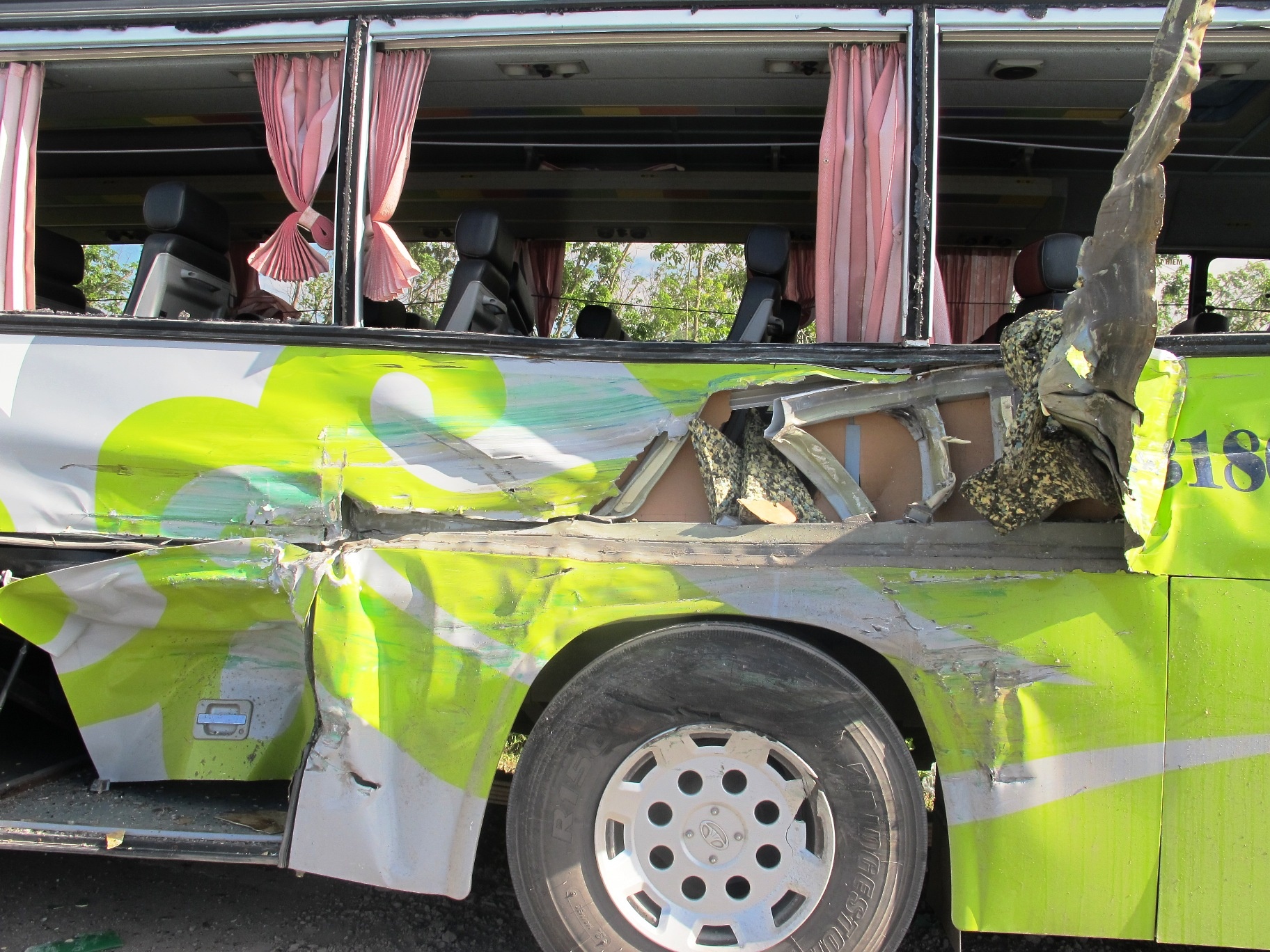 | Còn xe 89B bị hư hỏng phần thân. Rất may, vụ tai nạn chỉ làm 4 người bị thương nhẹ, hàng chục hành khách trên 2 xe may mắn thoát chết. |
