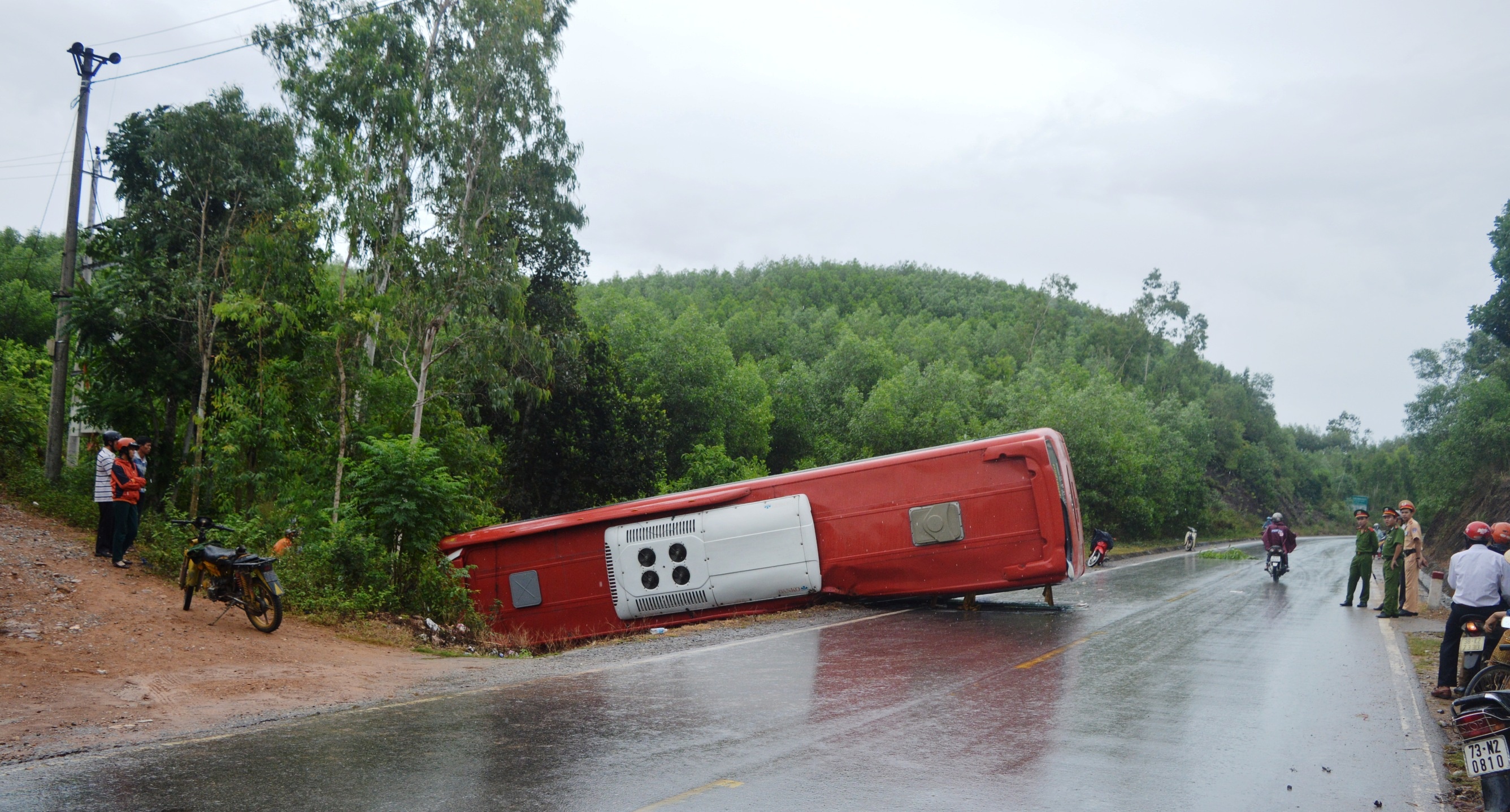 Thời điểm trên, xe khách BKS 75B do Trần Văn Huế (35 tuổi, trú xã Phong Bình, Phong Điền, Thừa Thiên Huế) điều khiển chạy hướng Nam - Bắc. Đến đoạn đường trên xe mất lái, lật ngang bên đường.