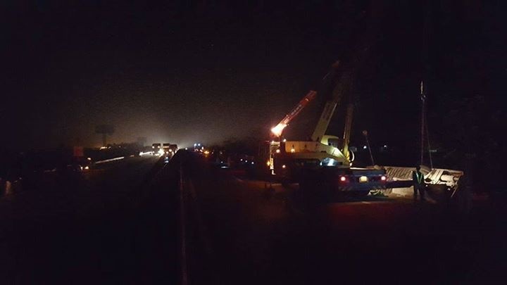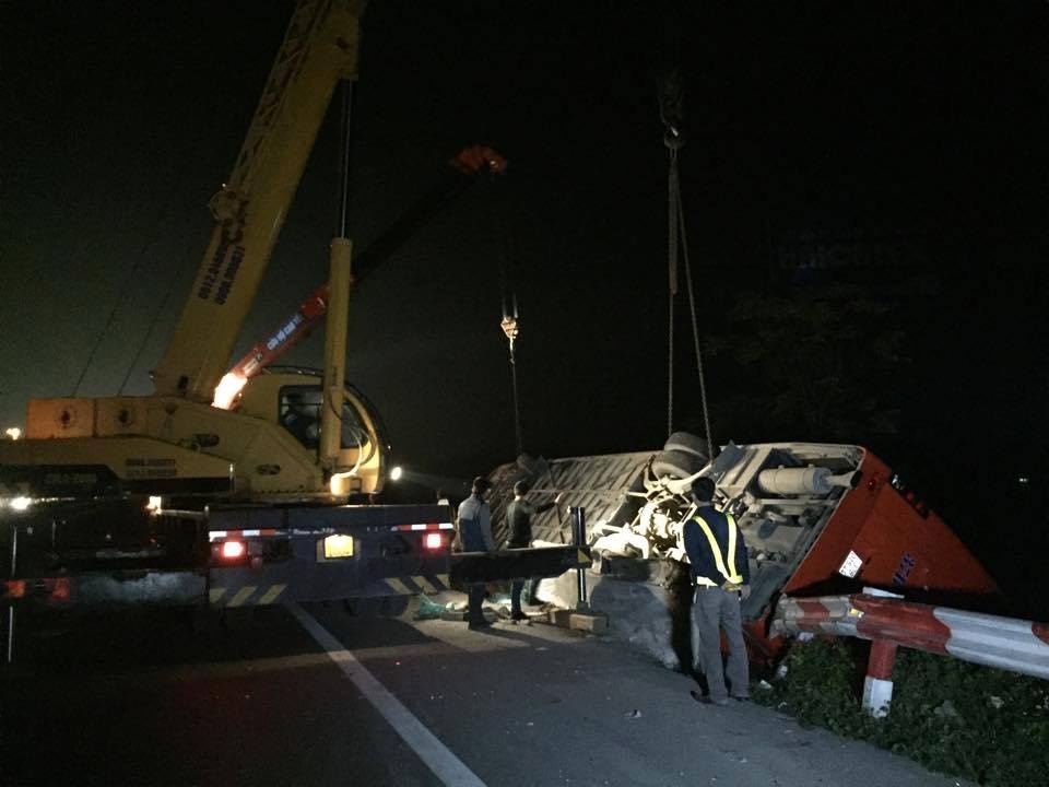 | Khoảng 00h ngày 8/12, 2 xe bị nạn được cẩu lên. Một làn cao tốc Pháp Vân - Cầu Giẽ bị phong tỏa nhiều giờ để phục vụ cứu hộ. |
