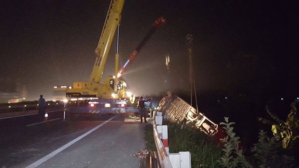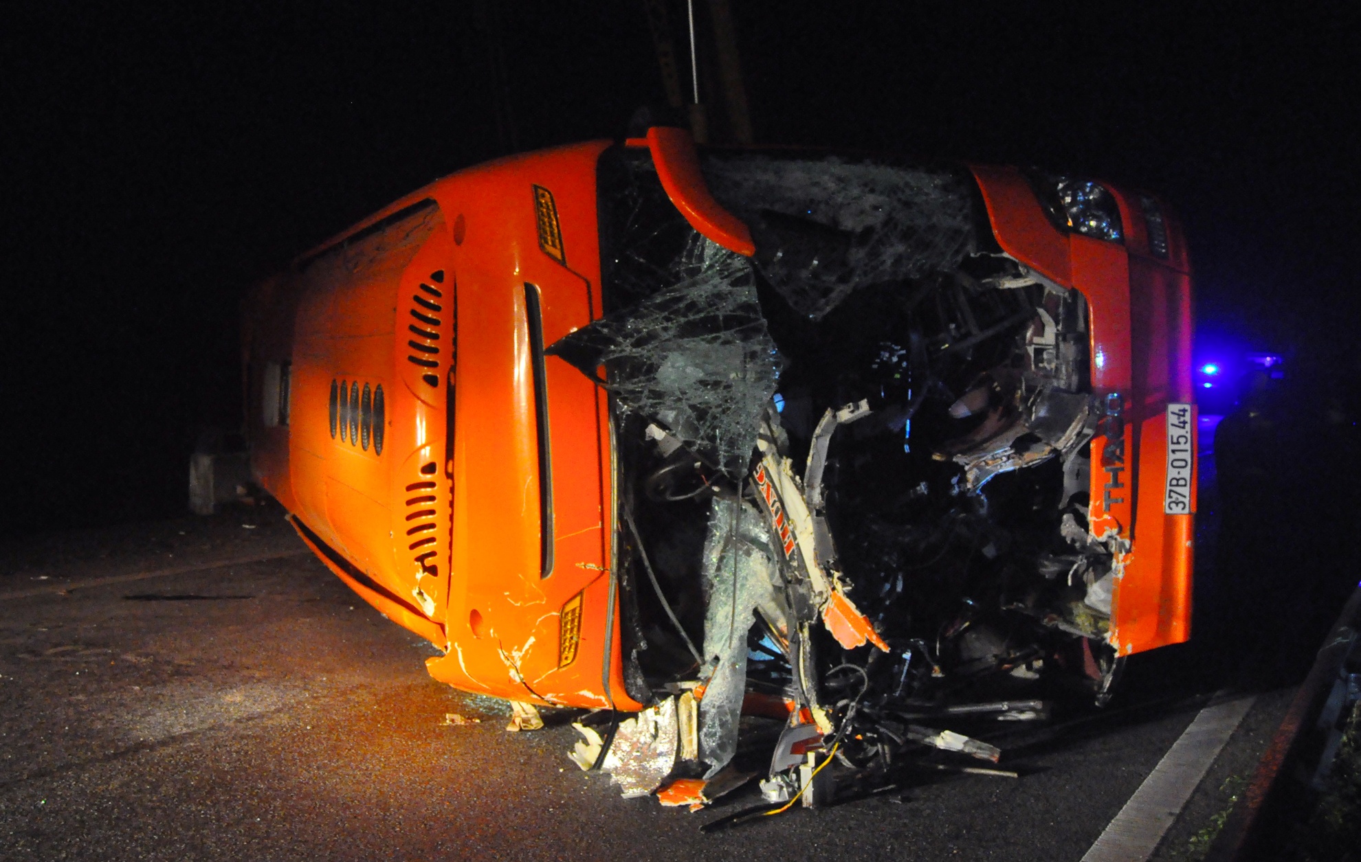 Đêm 7/12, xe khách Hùng Thủy (tuyến Hà Nội - Vinh) đã đâm vào đuôi một xe tải chạy cùng chiều trên cao tốc Pháp Vân - Cầu Giẽ (Hà Nội) khiến cả hai ôtô lật nhào lao xuống ruộng.