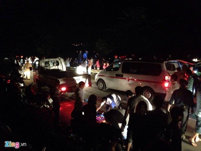 | Xe cấp cứu chờ đưa các nạn nhân còn sống sót về bệnh viện từ hiện trường. Ảnh: Nguyễn Minh Tuấn. |