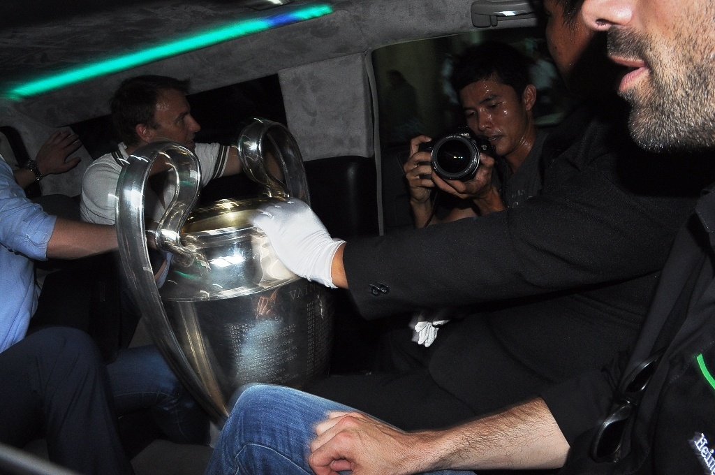 Chiếc xe đưa Van Nistelrooy cùng chiếc Cup Champions League về khách sạn chuẩn bị cho cuộc họp báo chiều nay.