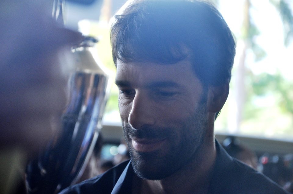 | Ngay cả khi đã lên xe Van Nistelrooy cũng không quên mỉm cười chào tạm biệt cổ động viên Việt Nam. |