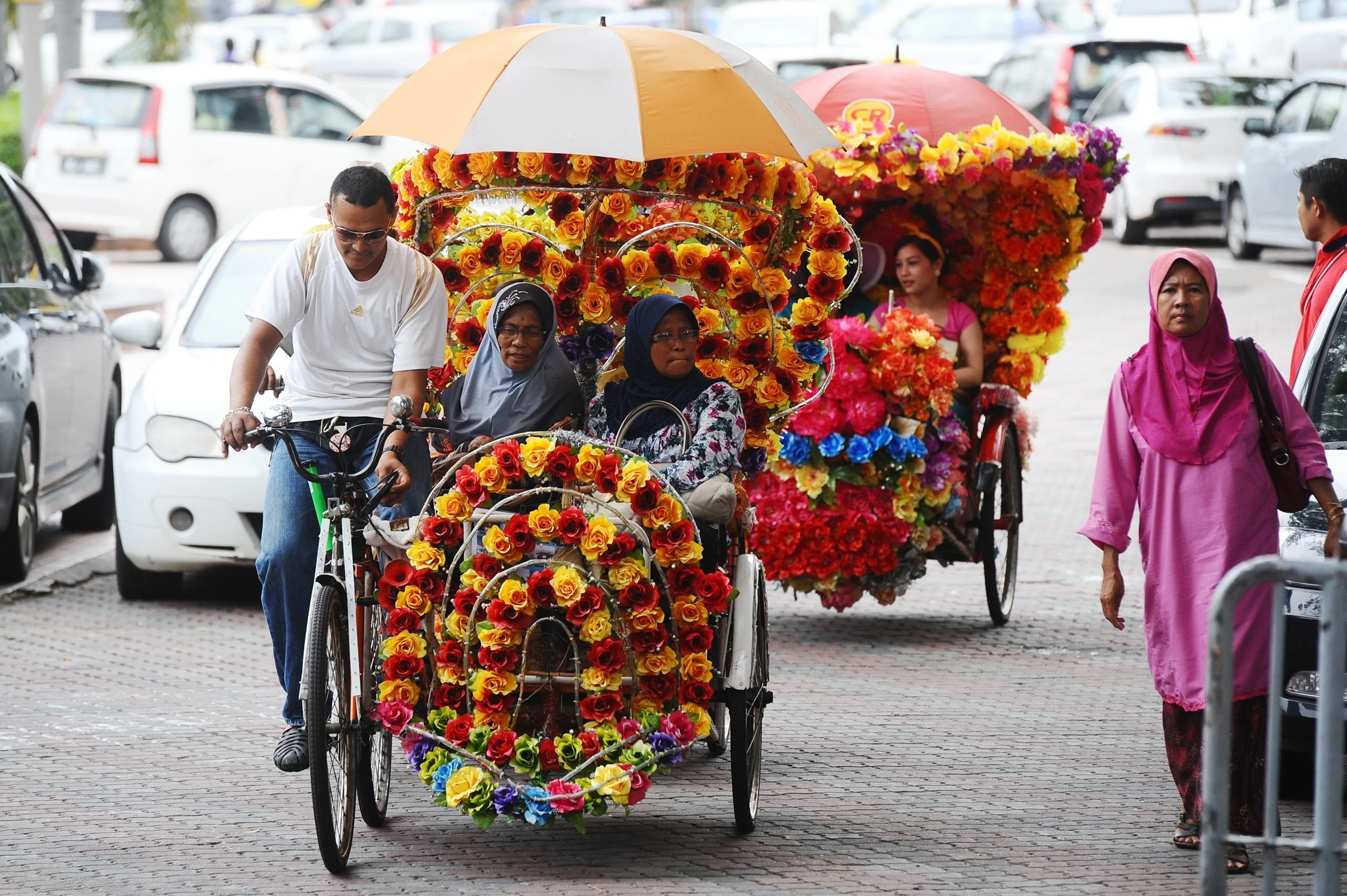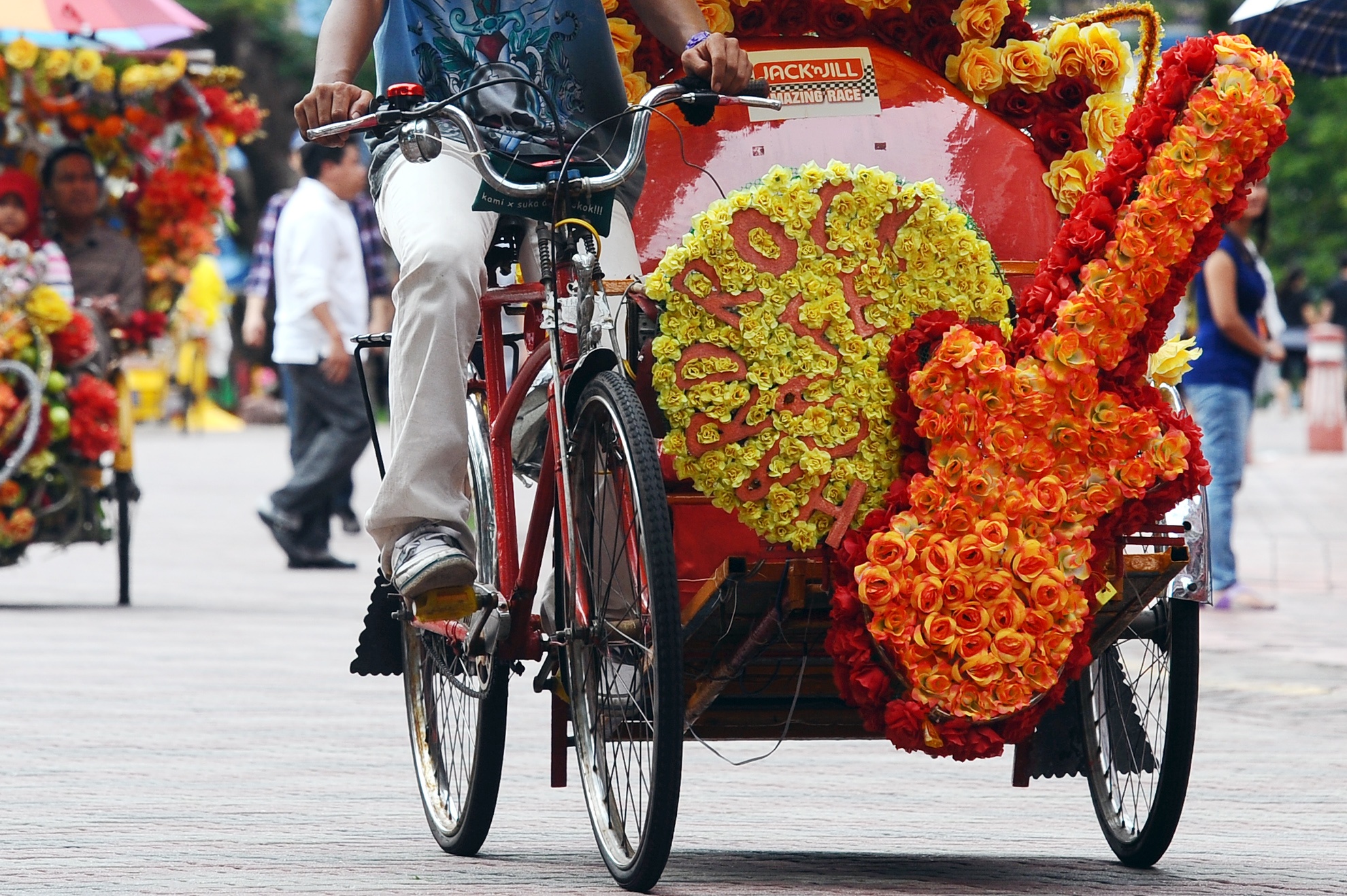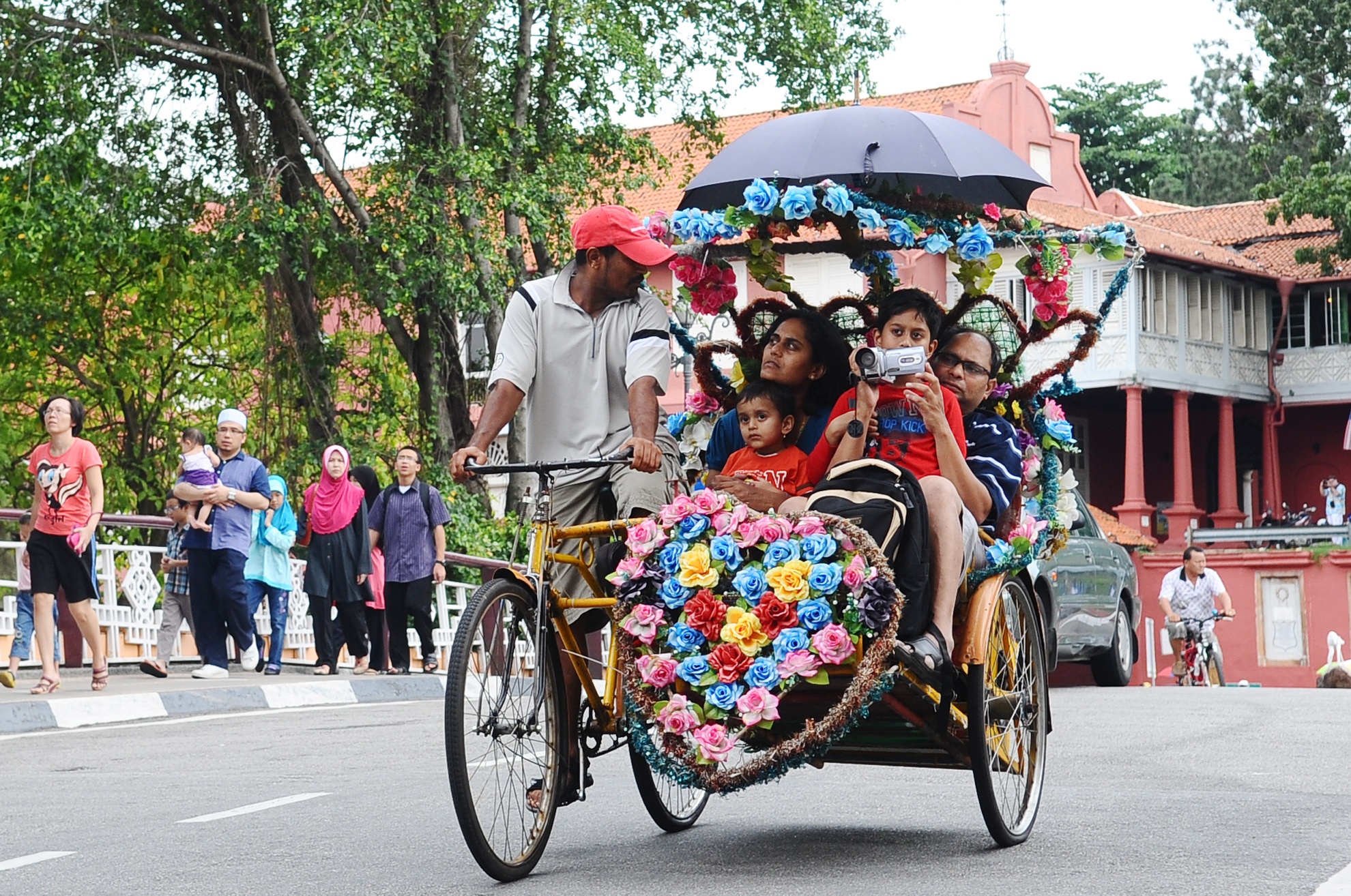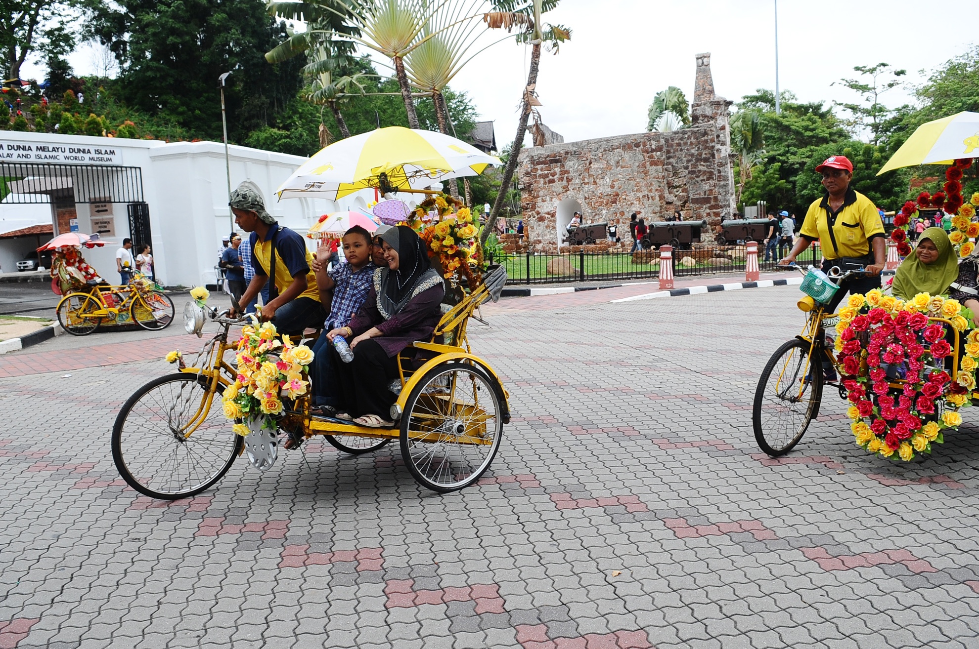 | Hình ảnh tại thành phố Malacca (Malaysia), nơi xuất hiện hàng trăm chiếc xích lô hoa chở khách tham quan (hay còn gọi là xe lôi, tên tiếng bản địa là Trishaws). |