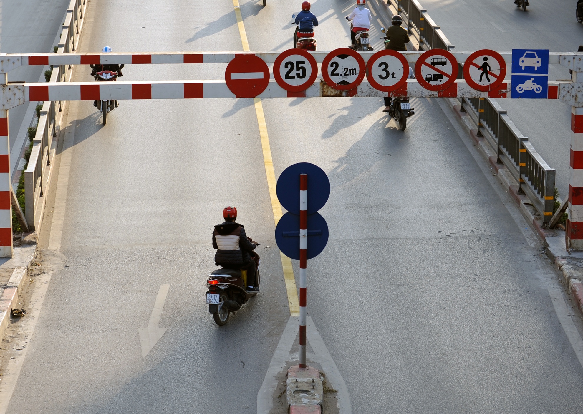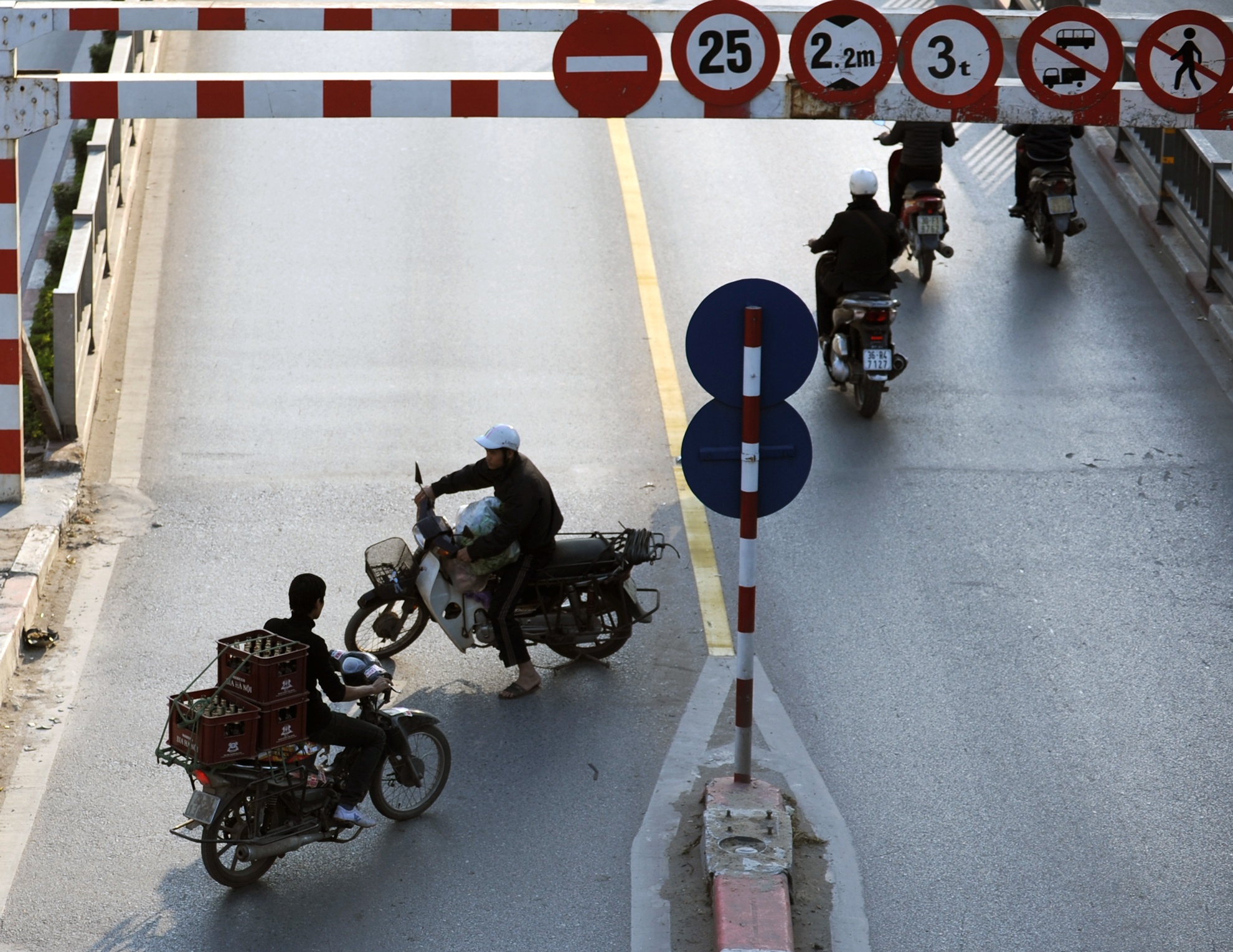 Kể từ khi Hà Nội xây dựng nhiều cầu vượt nhẹ nhằm giảm thiểu ùn tắc giao thông ở các nút trọng điểm thì nhiều hình ảnh không đẹp mắt vẫn thường xuyên diễn ra tại đây. Điển hình là người điều khiển xe máy thường xuyên đi ngược chiều, rẽ tắt gây nguy hiểm cho các phương tiện đang lưu thông từ trên cầu xuống. Tại cầu vượt nút Láng Hạ - Thái Hà, hai người đi xe máy chở hàng cùng vi phạm khi đi tắt để sang đường.
