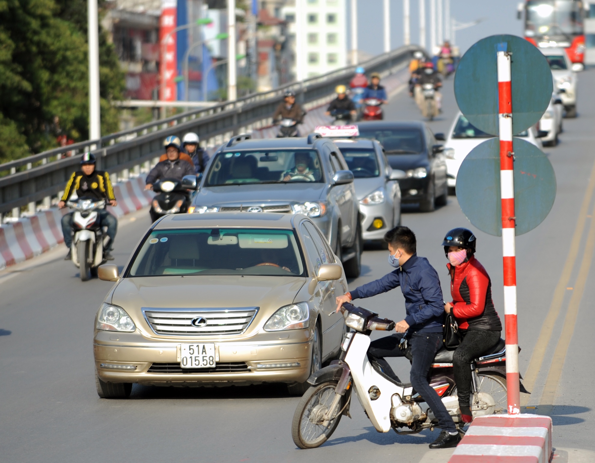 Trao đổi với Zing.vn các chiến sĩ Đội CSGT số 3 - Công an Hà Nội cho biết, một trong những nguyên nhân gây ùn tắc, tai nạn nữa đó là người tham gia giao thông khi vừa xuống khỏi cầu vượt đã rẽ phải ngay. "Đây là những lỗi vi phạm vô cùng nguy hiểm, nhất là các phương tiện đang lưu thông phía dưới cầu khó có thể quan sát các xe từ trên rẽ phải đột ngột", một cảnh sát nói.