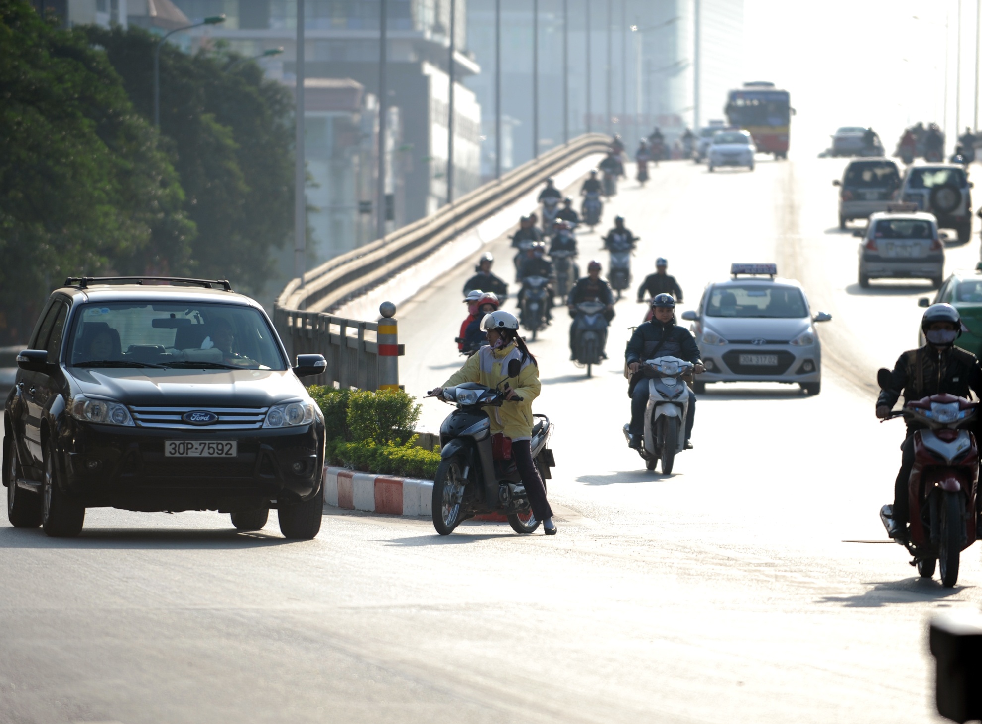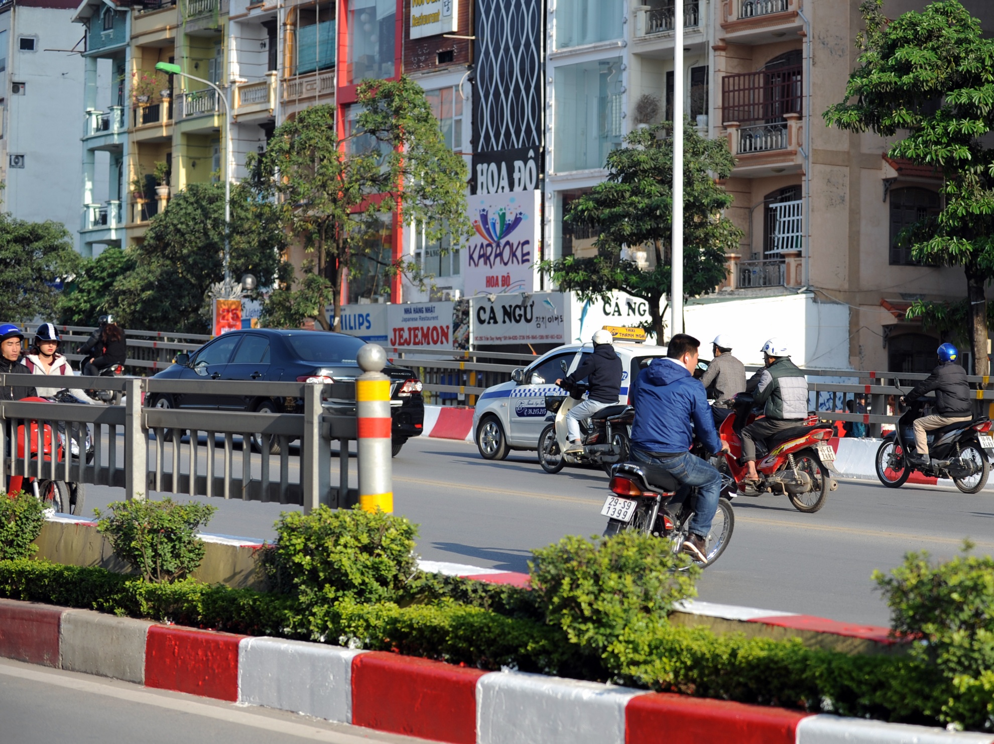 | Khu vực cầu vượt Nguyễn Chí Thanh - Trần Duy Hưng, mật độ phương tiện di chuyển khá nhanh và đông. Nhiều người vi phạm không e dè khi lao vào chỗ ôtô, xe máy đang phóng tốc độ cao. |