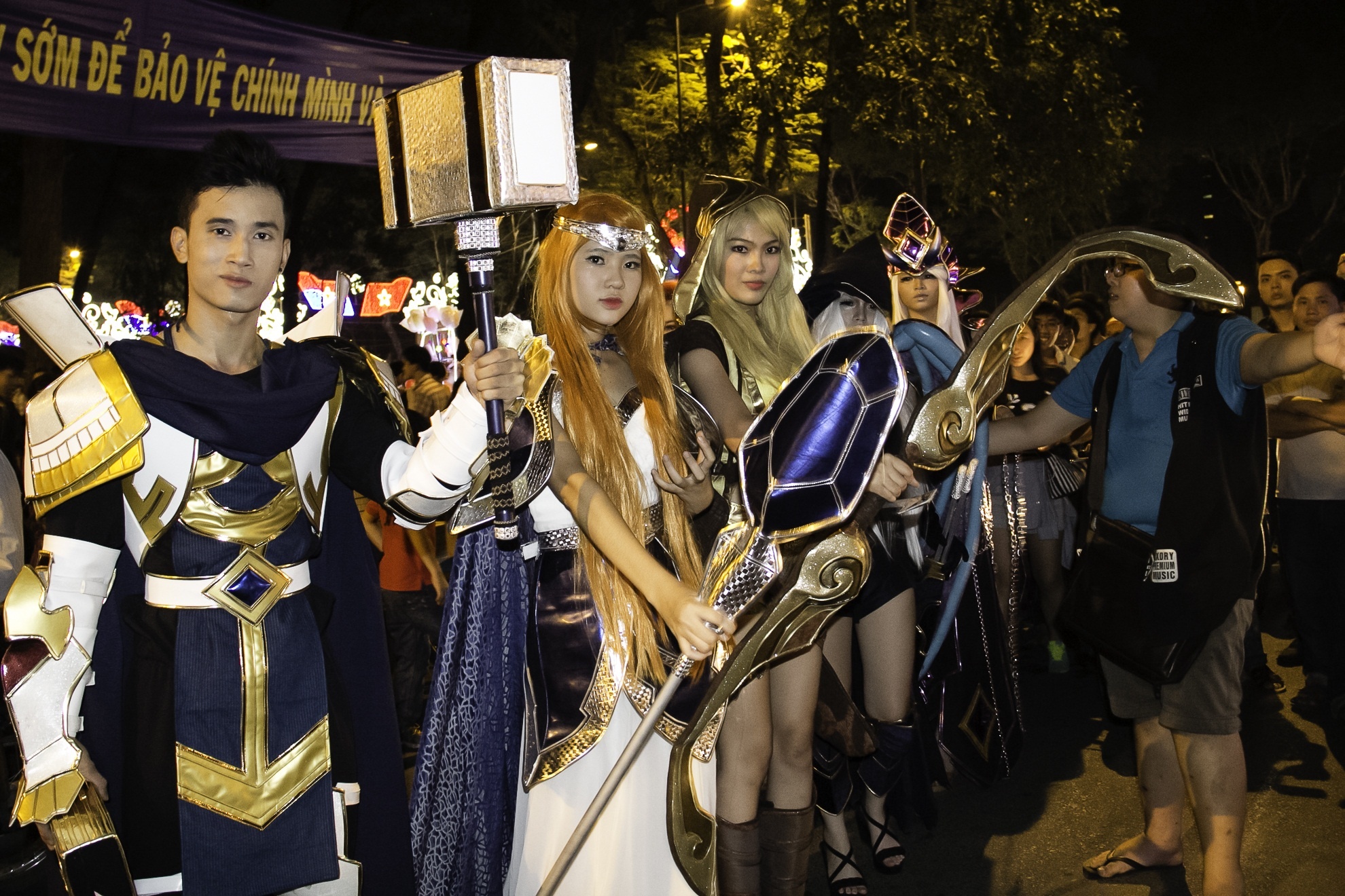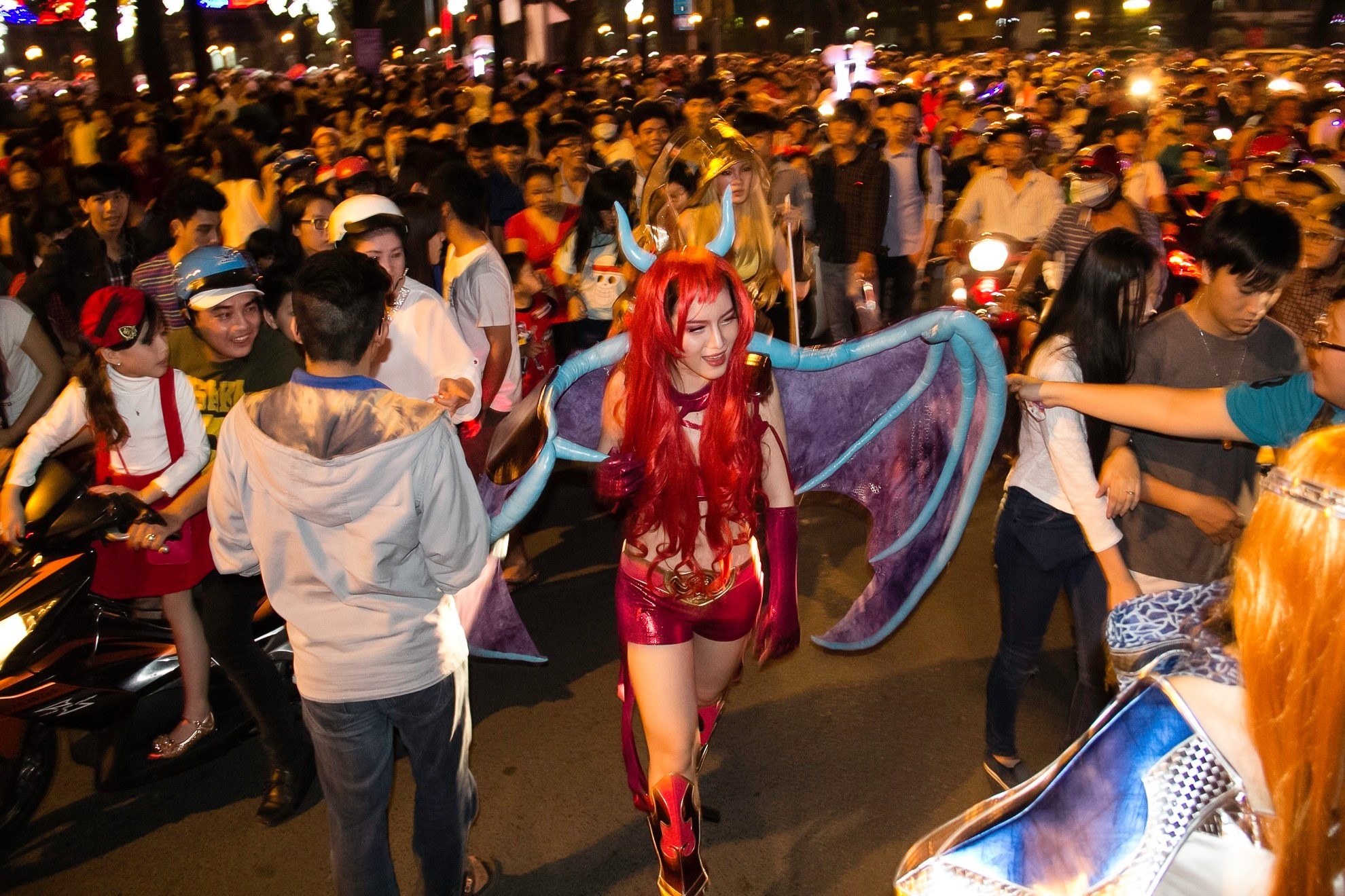 | Một số người vận các trang phục của trò chơi online cũng tham gia khuấy động đường phố. Ảnh: Hải An. |