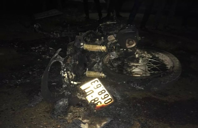 | Chiếc xe máy cháy rụi sau tiếng nổ lớn. |