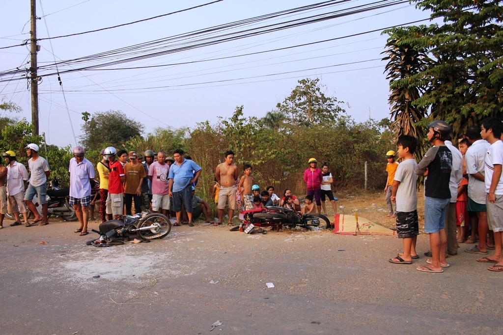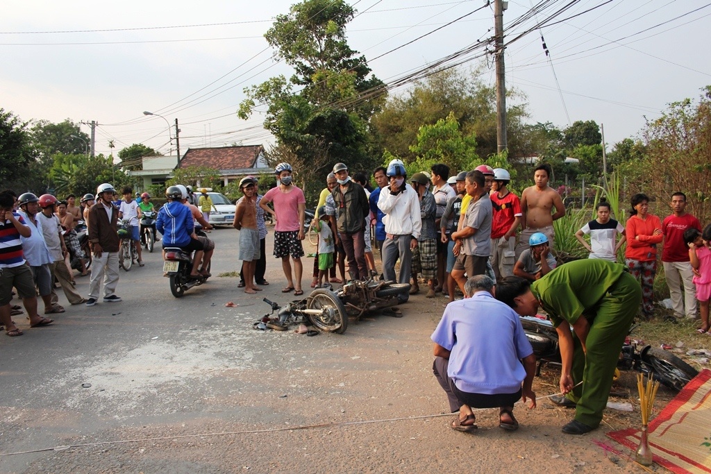 Hai chiếc xe máy chở năm người tông cực mạnh vào nhau khiến một người chết tại chỗ, bốn người còn lại phải đi cấp cứu tại Củ Chi (TP.HCM) chiều 2/3.