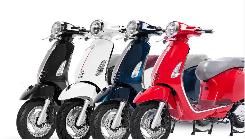 | Khách hàng có đến 4 cơ hội lựa chọn xe với các màu trắng, đỏ, đen và xanh navy cho cả hai phiên bản xe 1.200 W - 60 V và 800 W - 48 V. |