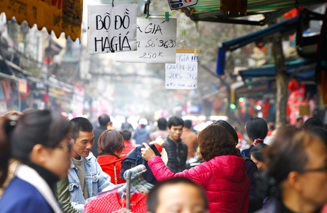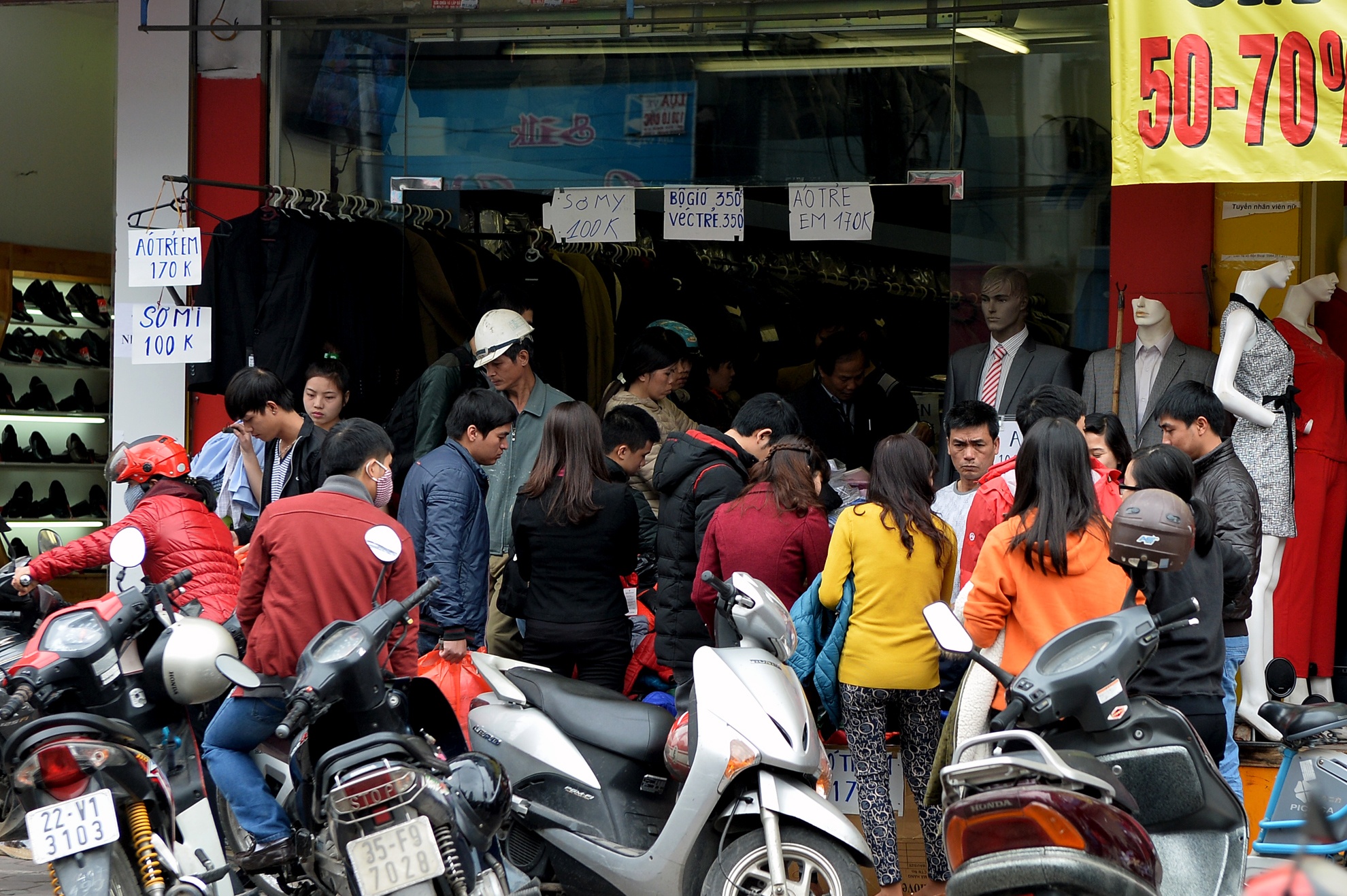 | Các shop quần áo mùa đông đều trong cảnh chen lấn. |