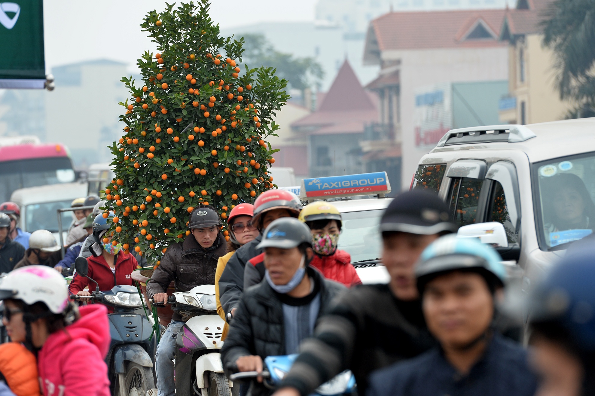 | Đoạn từ Nghi Tàm lên chợ hoa Quảng Bá cũng ùn ùn xe cộ. |