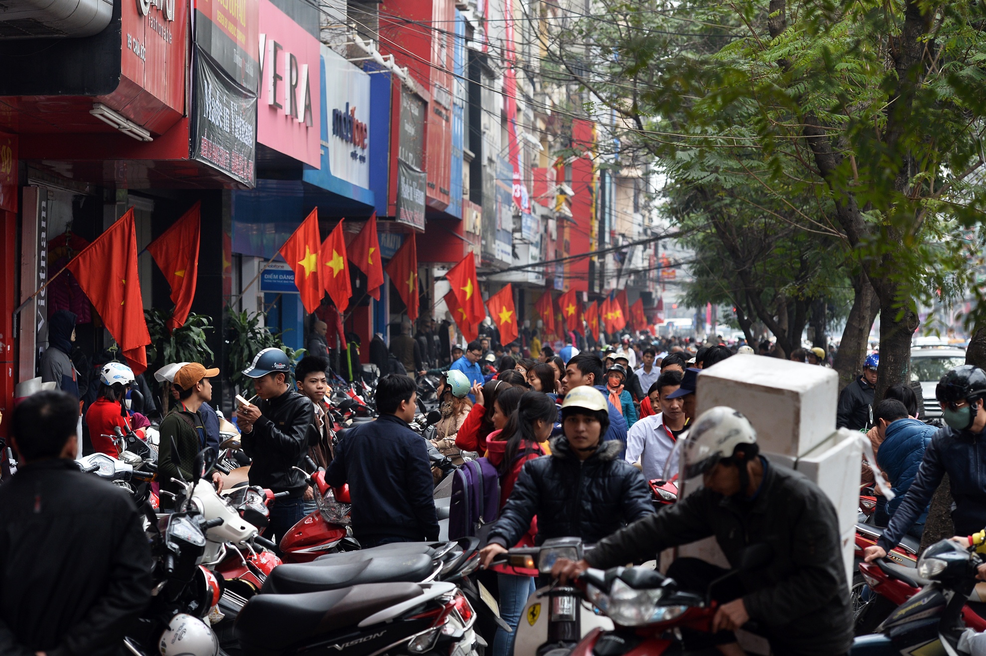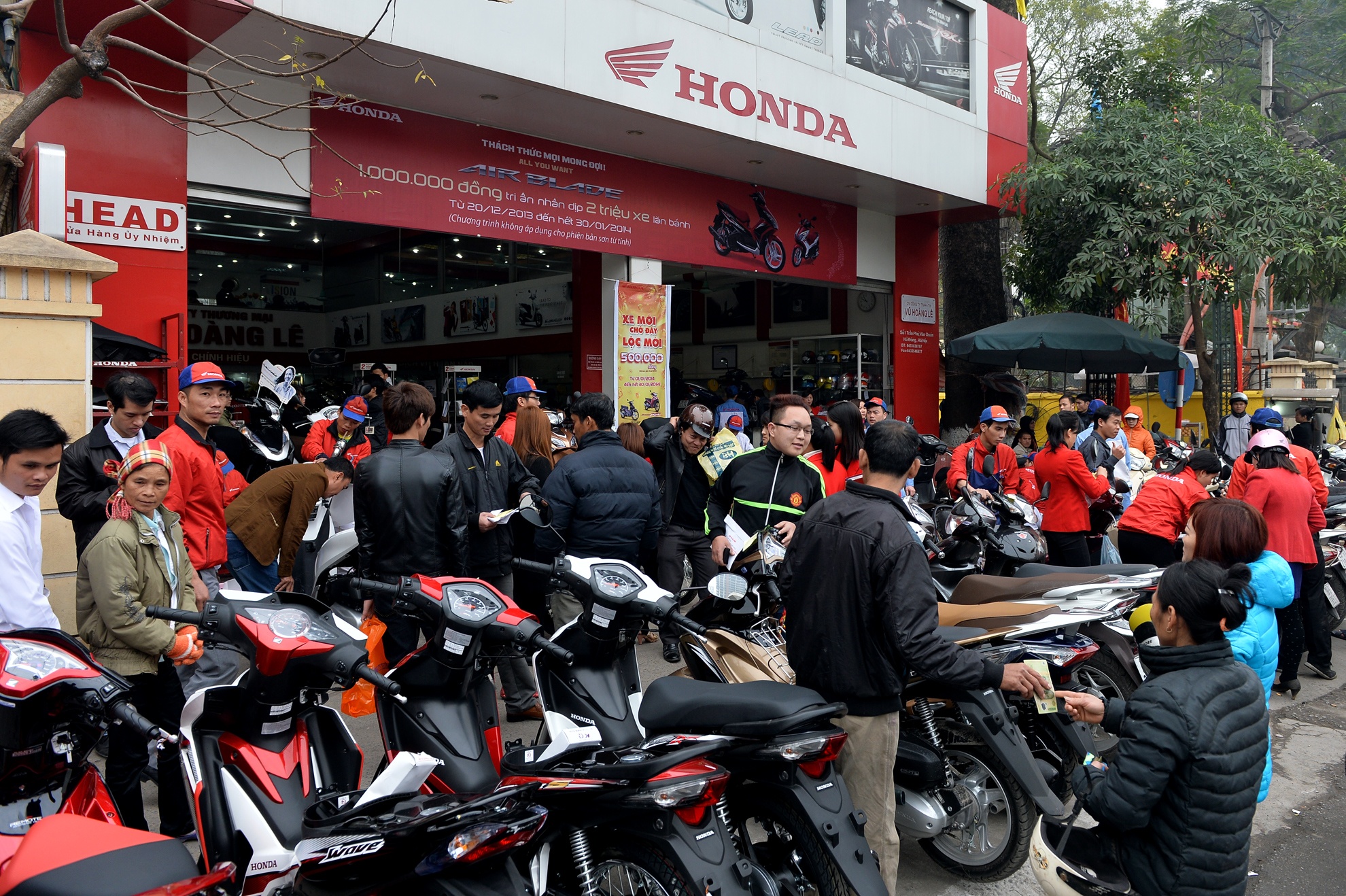 | Đại lý xe máy cũng chật ních. Trong số này có nhiều người tranh thủ tiền thưởng Tết vội mua xe máy trước ngày cuối cùng có thể nộp trước bạ và đăng ký biển số. Người quản lý cửa hàng này cho biết, dịp cận Tết bán được hàng chục chiếc thay vì thường ngày ảm đạm chẳng mấy ai vào hỏi. |