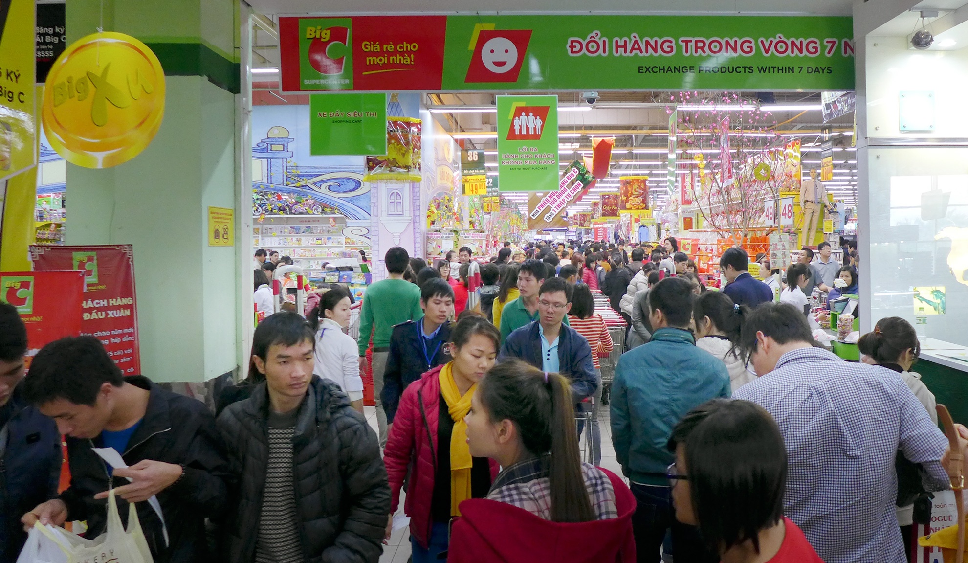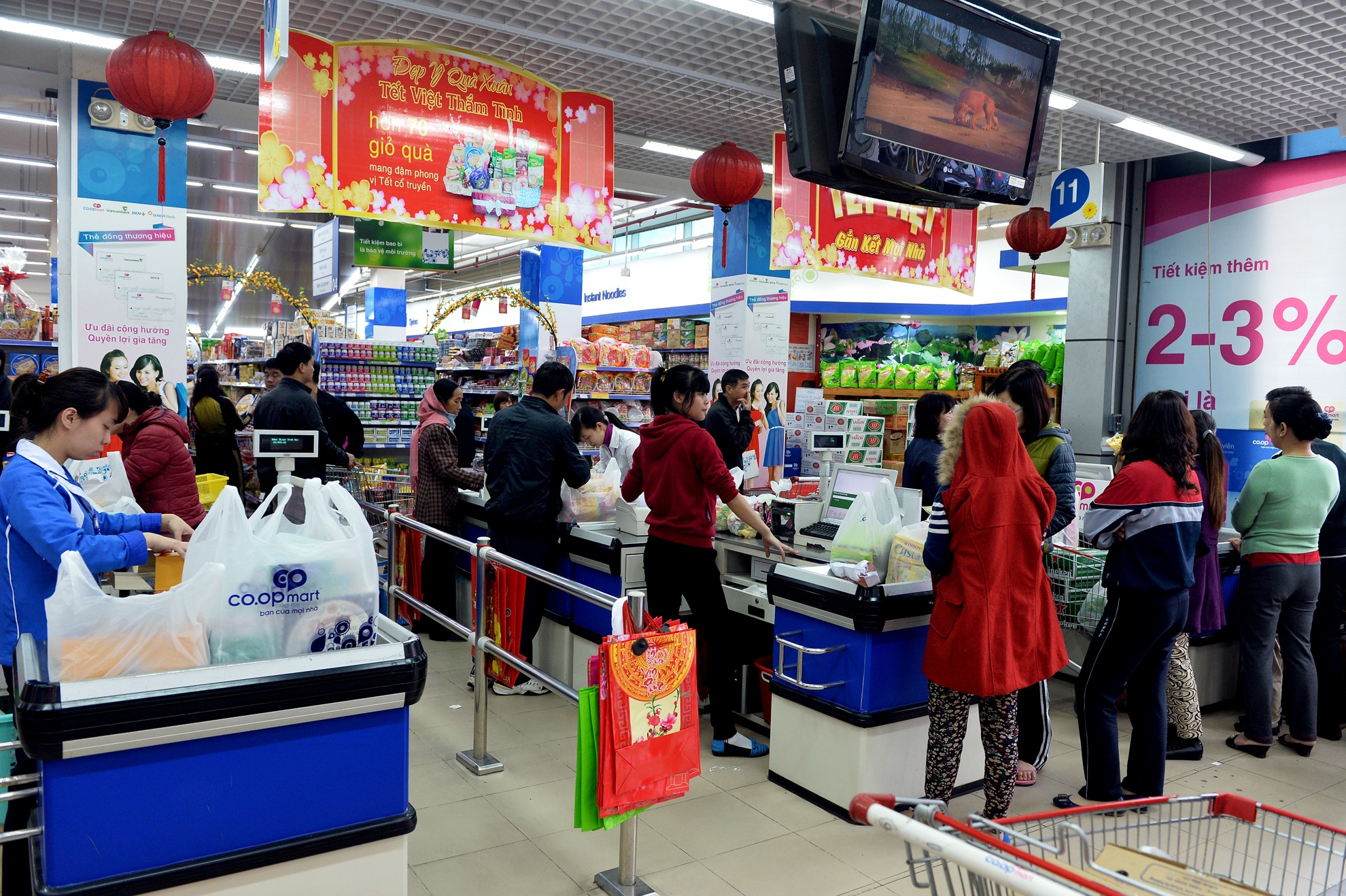 | Trung tâm thương mại Sài Gòn Coop Mart trên đường Nguyễn Trãi, quận Thanh Xuân ngay từ 9h sáng đã đông đúc. |