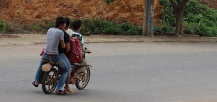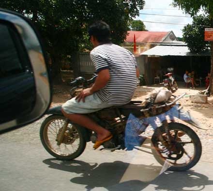 Có khi là trẻ em đi học, lái xe như làm xiếc, xe đạp mong manh làm xiếc giữa đường, trong khi xe máy của đám chở hàng buôn lậu được “độ” kỳ quái nhất cứ bất chấp mọi quy định an toàn – chúng cứ nẹt ga đinh tai nhức óc.