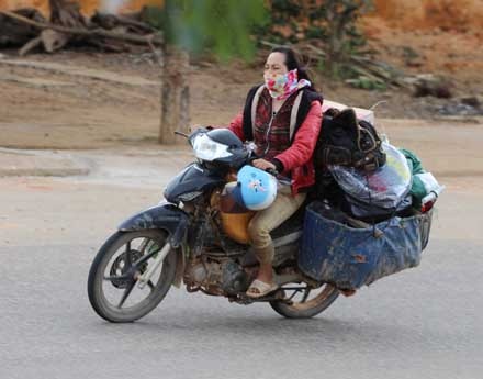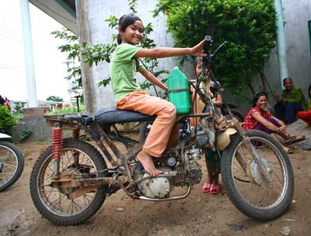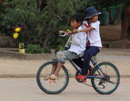 | Có khi là trẻ em đi học, lái xe như làm xiếc, xe đạp mong manh làm xiếc giữa đường, trong khi xe máy của đám chở hàng buôn lậu được “độ” kỳ quái nhất cứ bất chấp mọi quy định an toàn |