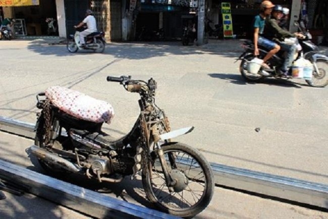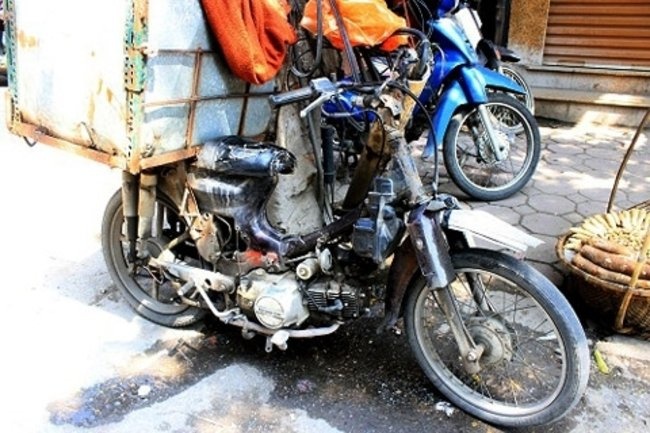 | Không còn rõ hình hài chiếc xe Honda "lừng lẫy" một thời. |