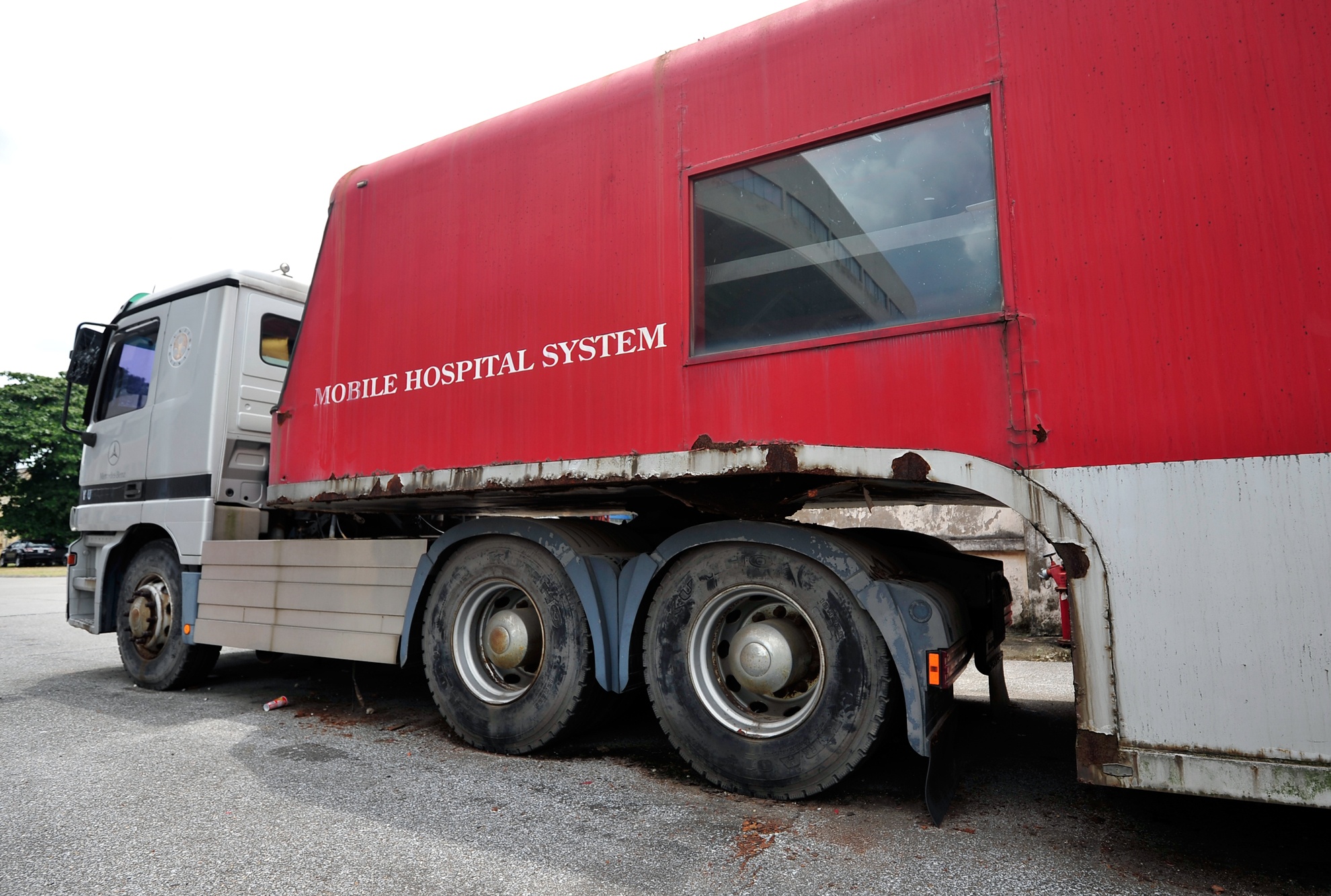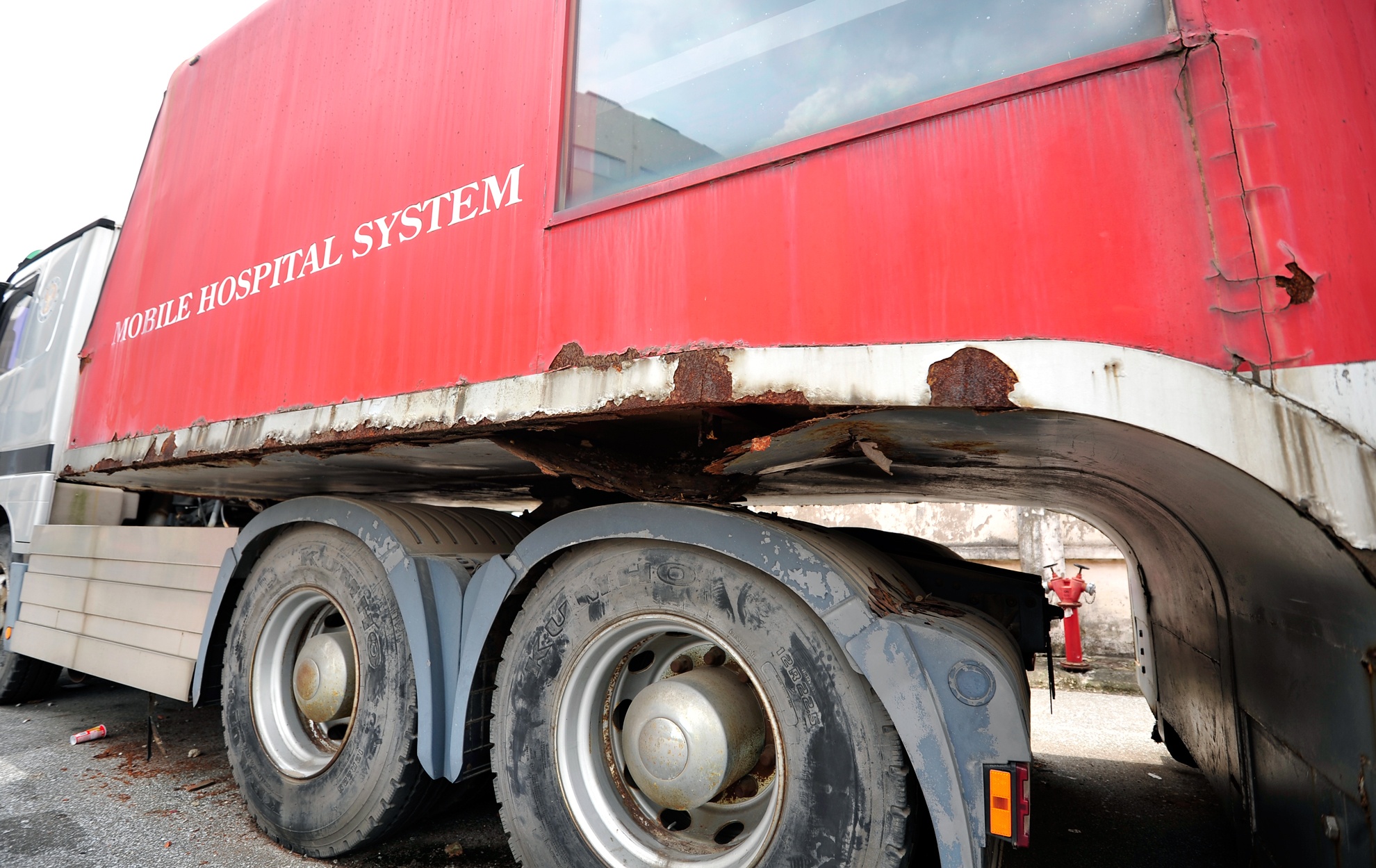 Chiếc xe đầu kéo và rơmooc 40 feet hiện đại, nhập từ Hàn Quốc để khám chữa bệnh lưu động song chỉ mới "biểu diễn" duy nhất một lần và bỏ hoang suốt 7 năm nay.