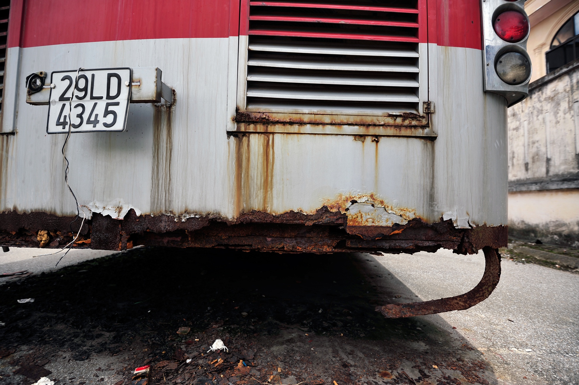 Gần 7 - 8 năm trời chiếc xe để không tại bãi, không có người chăm sóc, bảo dưỡng nên chiếc xe đã xuống cấp, phủ rêu. Nhiều bộ phận hoen gỉ, mục nát gây ảnh hưởng tới mỹ quan và môi trường.