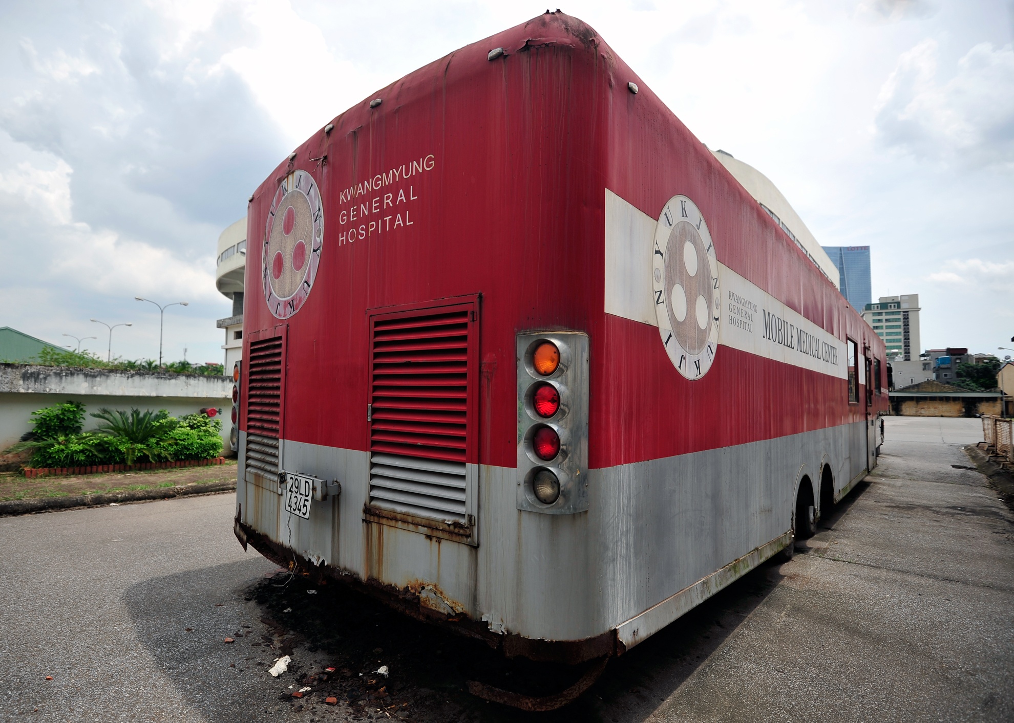 Đại diện Ban quản lý cung thể thao cho hay, chiếc xe nằm yên tại đây từ năm 2007. "Khi có dự án bệnh viện liên doanh với Hàn Quốc xây ở Từ Liêm - Hà Nội, chiếc xe được nhập vào Việt Nam. Tại buổi lễ khai trương long trọng, nhiều khách mời tới dự, xe đi 1 vài vòng trong khu thể thao, khám bệnh và trả kết quả cho mọi người tại đó", Trưởng Ban quản lý cung Trần Bá Kiểm cho biết.