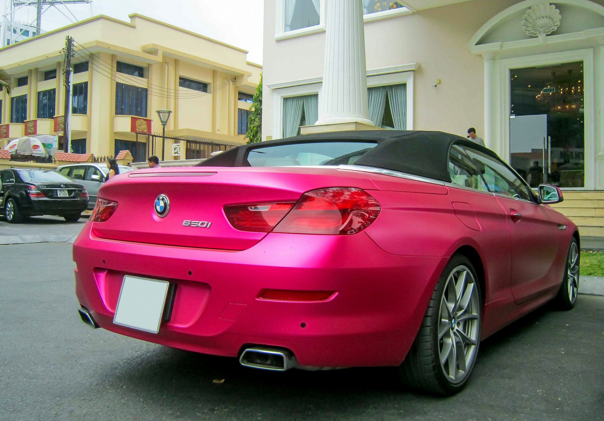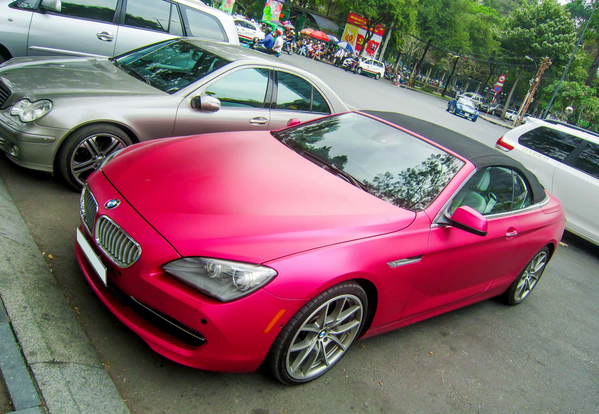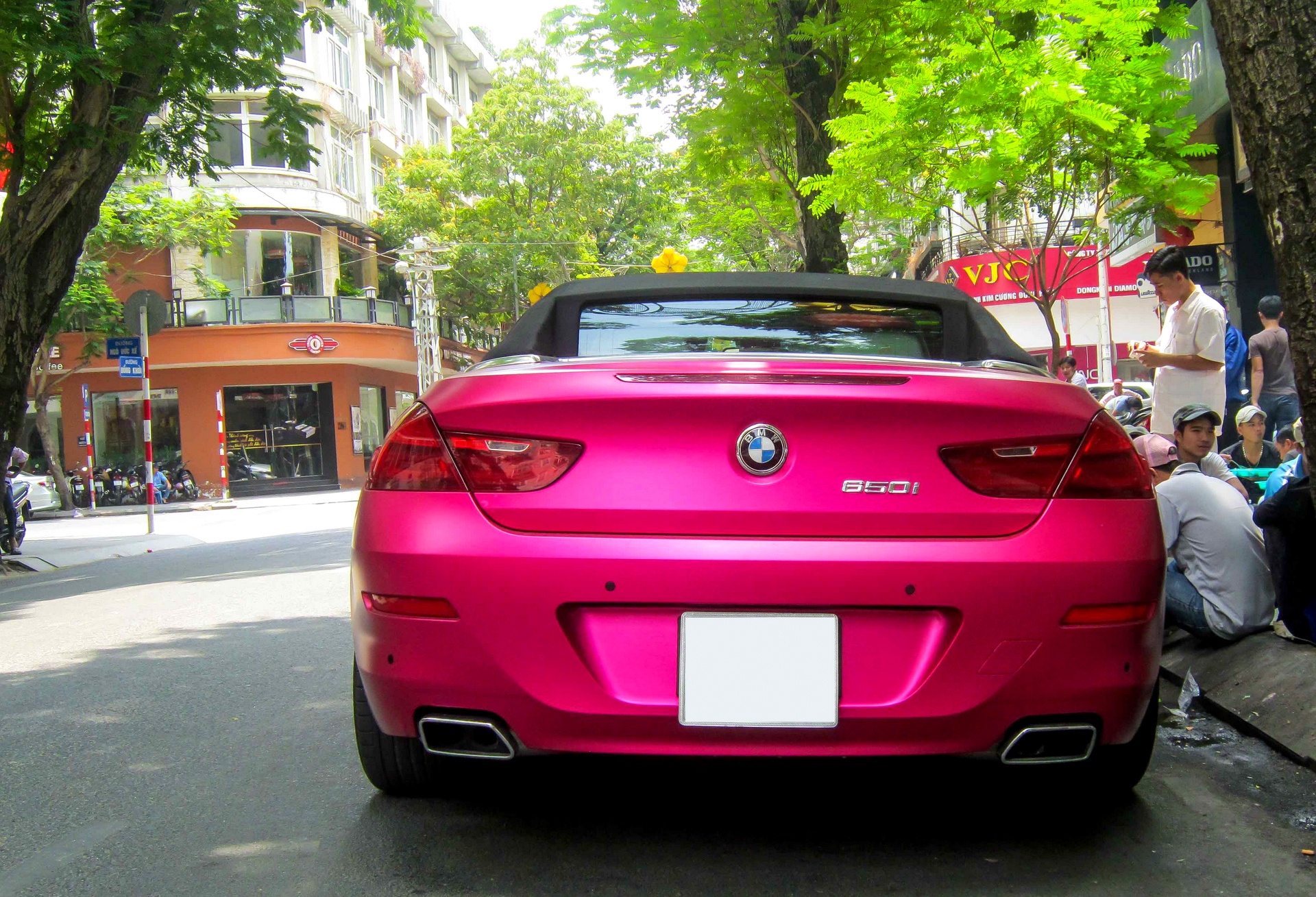 Chiếc BMW 650i mui trần có giá trên 5 tỷ đồng tại Việt Nam, được chủ nhân khoác lên mình bộ cánh màu hồng mờ nổi bật.