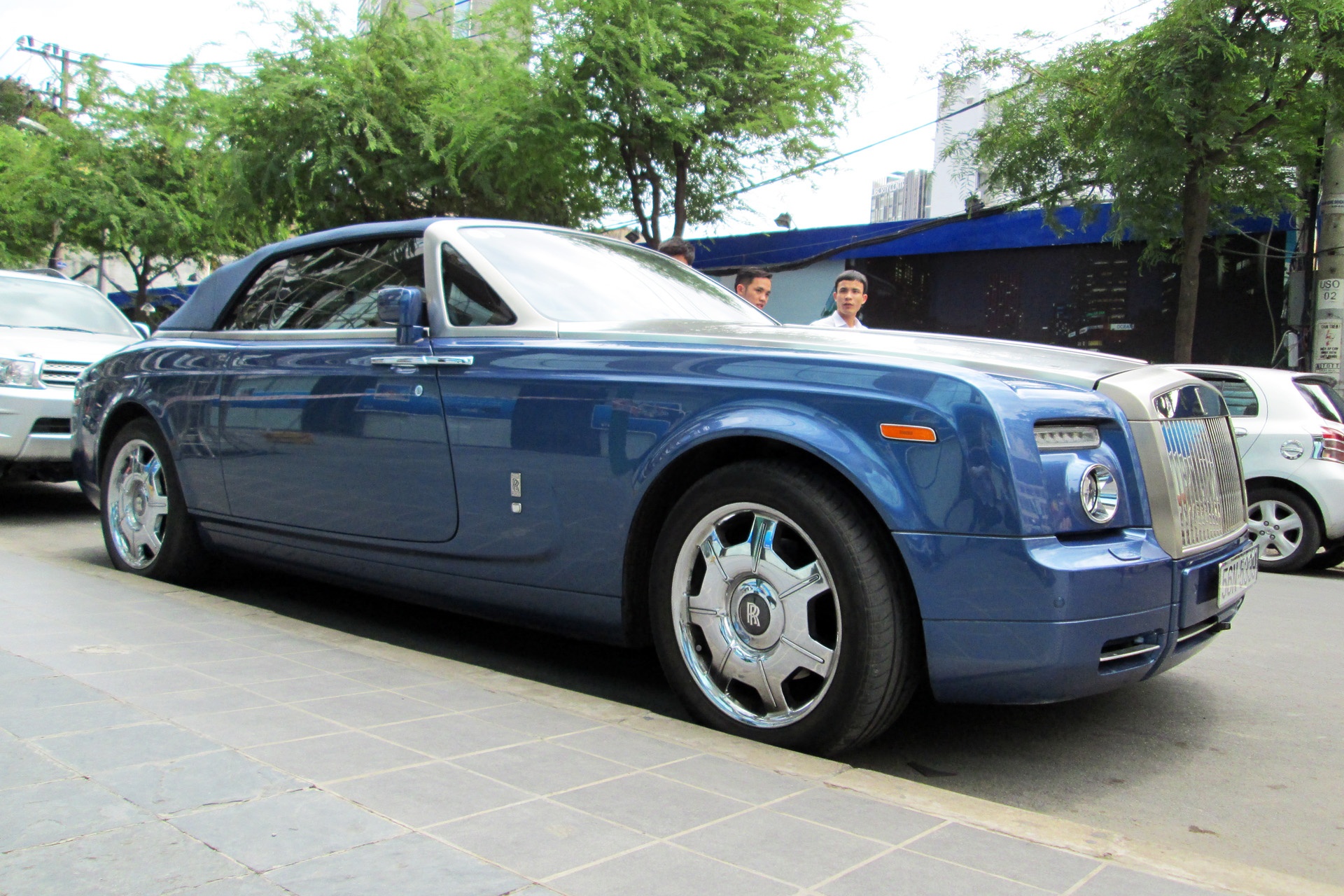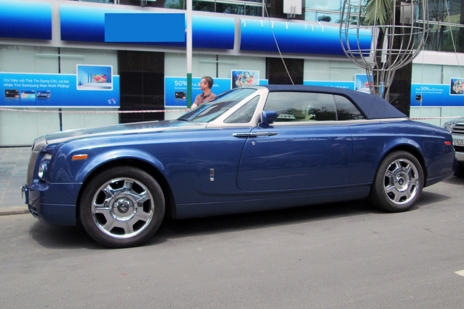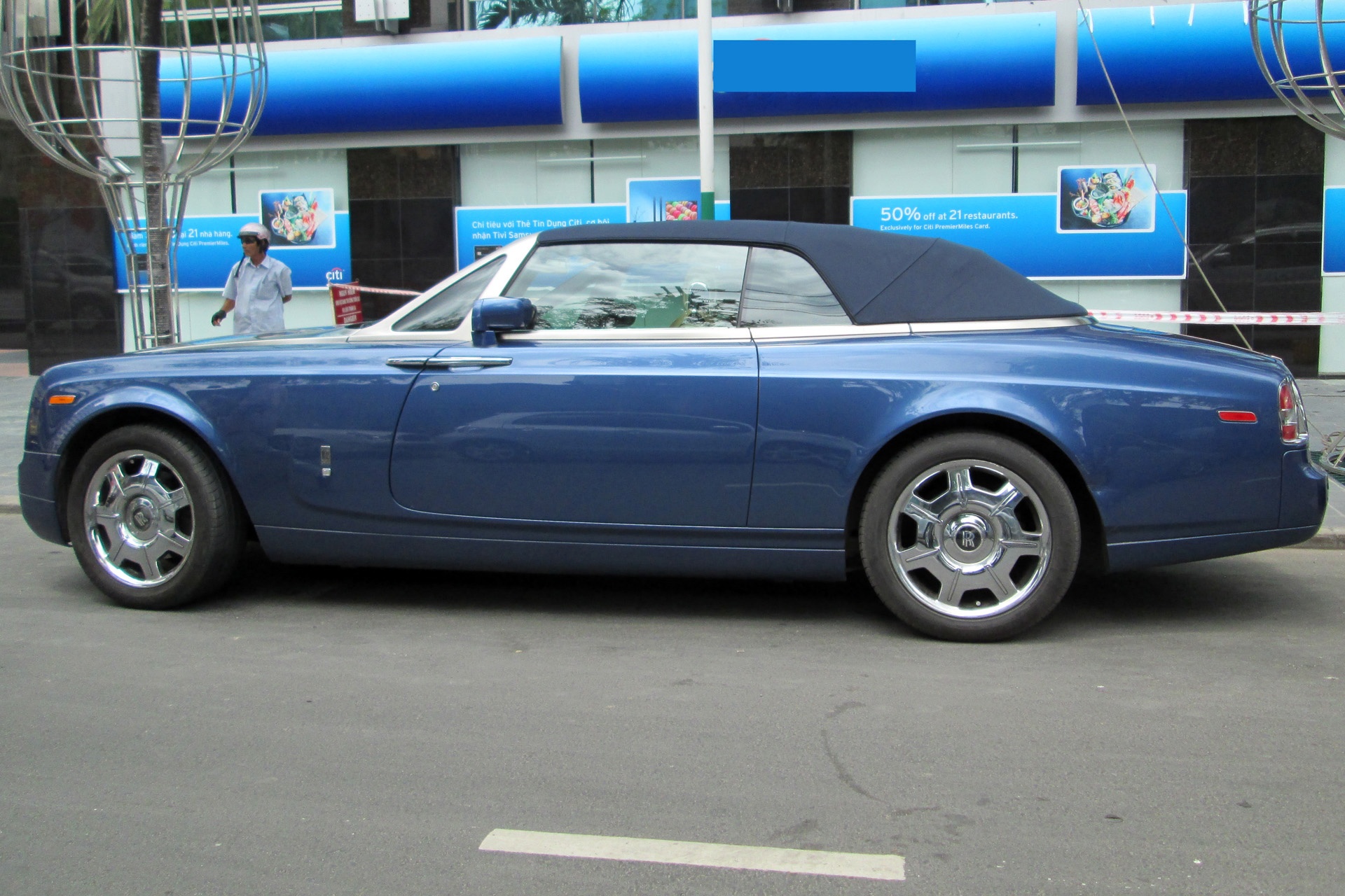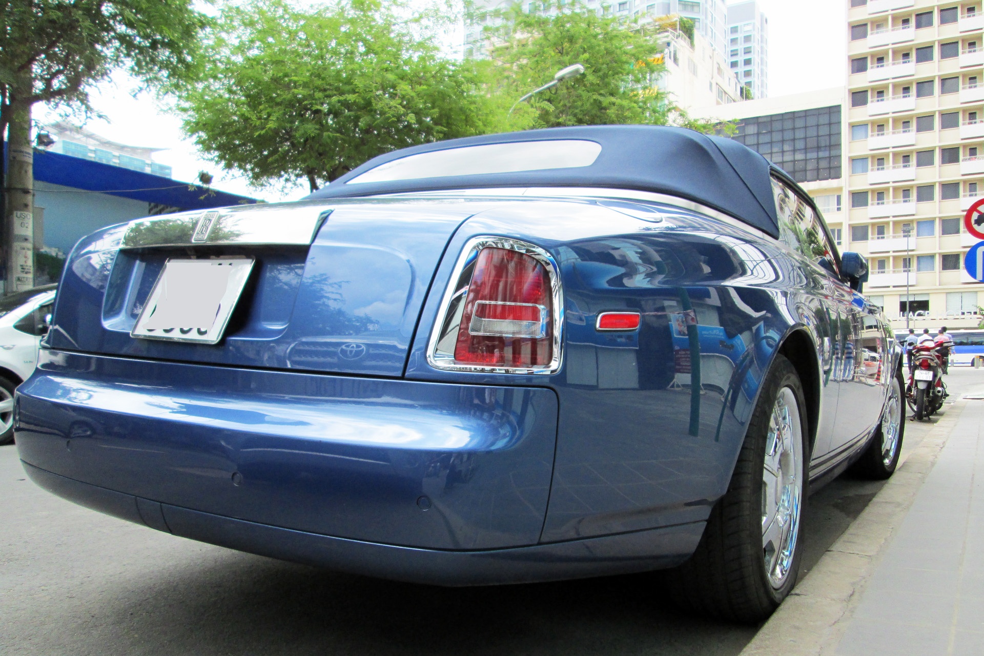 Hiện tại số lượng Phantom Drophead Coupe tại Việt Nam được ghi nhận có 5 chiếc, với những tông màu khác nhau. Mẫu xe mui trần xuất hiện trên đường phố Sài Gòn mới đây mang màu xanh dương khá bắt mắt. |