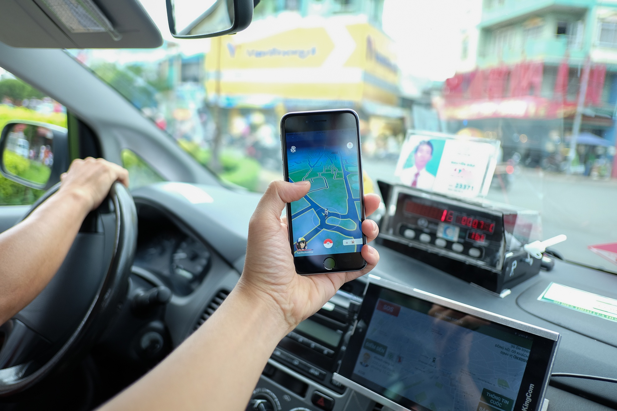 | Nhiều người chơi tại Việt Nam đang chọn cách bắt pokemon bằng taxi, xe ôm thay vì tự di chuyển để tránh rủi ro. Ảnh: Duy Tín. |