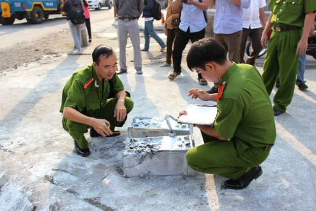 Tài xế cho biết, có thể do chập điện bình ắc quy bố trí sau xe nên gây ra sự cố nêu trên.