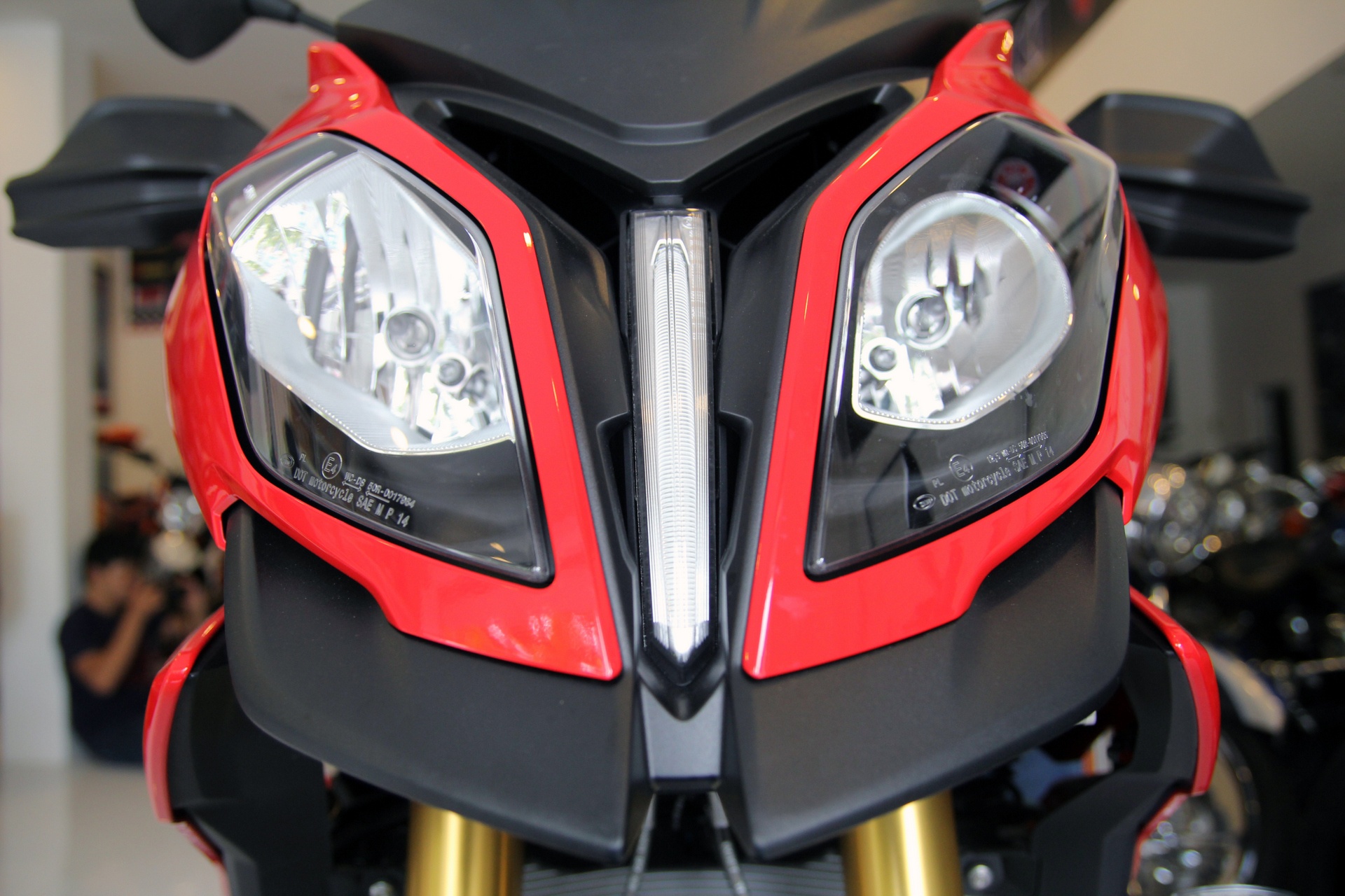 | Một khác biệt dễ nhận thấy nhất của S1000XR so với "người anh em" S1000RR là cụm đèn trước kiểu đối xứng, khác hẳn phong cách "mắt tròn mắt dẹt" trên siêu môtô Đức. Ngoài ra, chiếc xe này còn được bố trí dải LED ban ngày chạy dọc mặt nạ nhằm thu hút sự chú ý. |