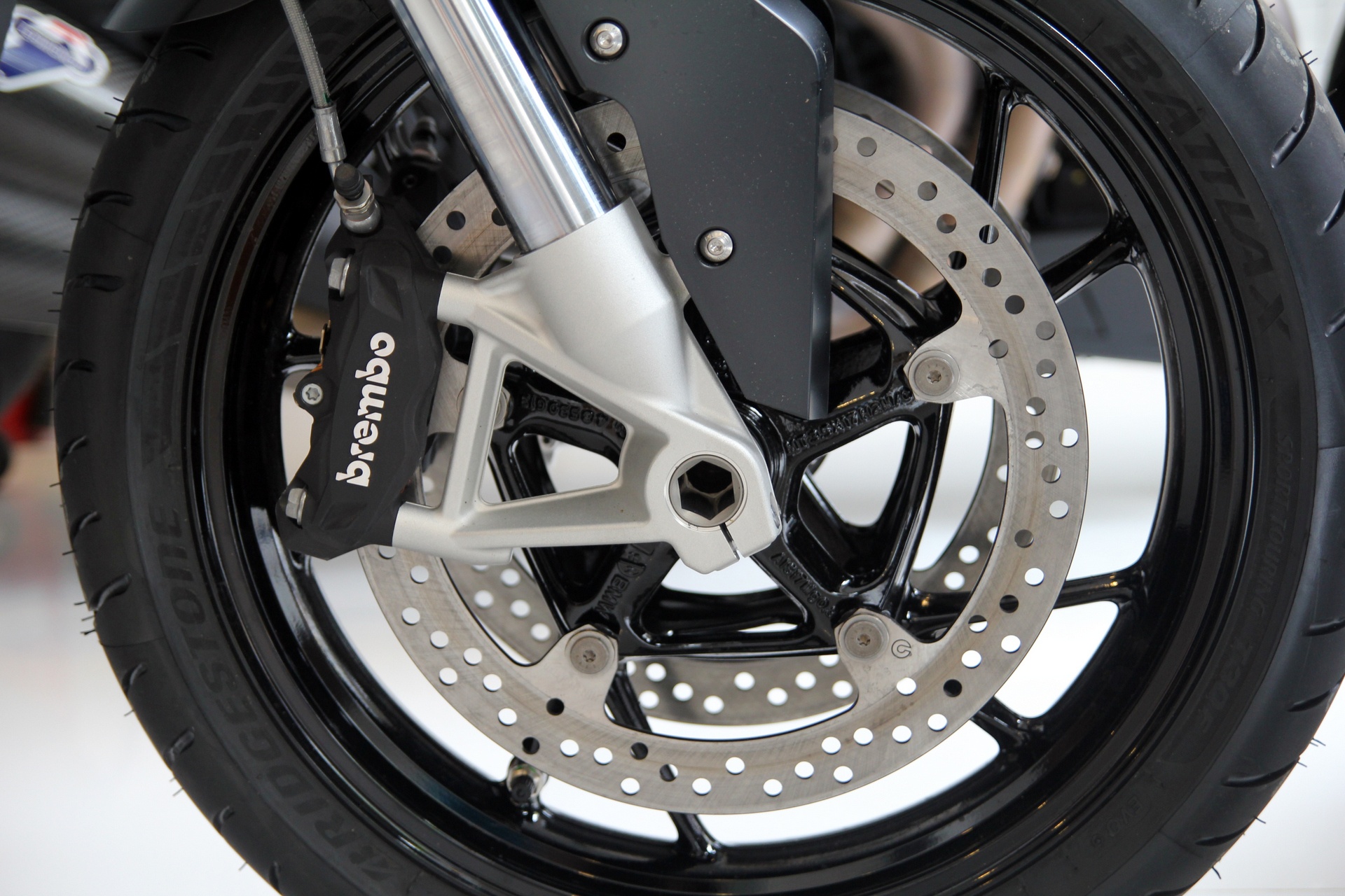 | Trang bị tiêu chuẩn trên xe gồm hệ thống phanh đĩa kép phía trước, đường kính 320 mm, heo dầu Brembo bốn piston cùng hệ thống ABS tiên tiến nhất. Bên cạnh đó, món đồ chơi không thể thiếu là cặp phuộc upside-down đường kính 46 mm. |