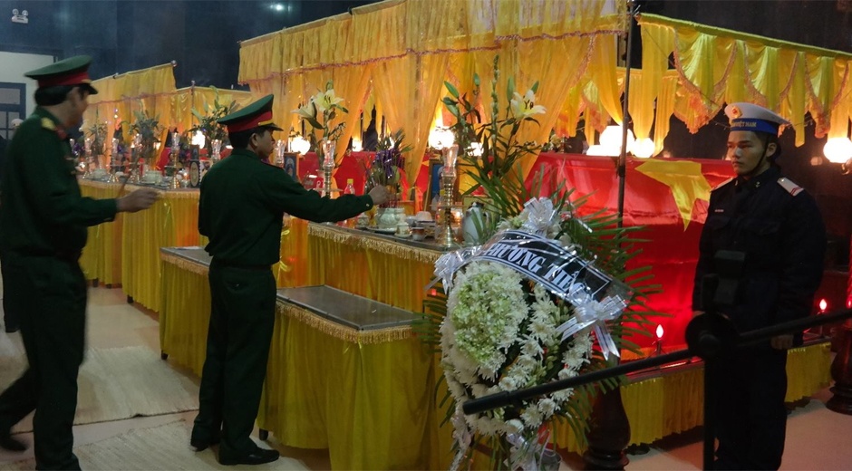 Khoảng 14h chiều 17/12, Ban tang lễ thuộc Nhà tang lễ Quân khu 5 tổ chức khâm liệm 5 chiến sĩ đã hi sinh. Hành trang cá nhân cũng được đồng đội thu dọn, xếp kỹ lại trong từng ba lô để đưa theo các anh. Không gian Nhà tang lễ Quân khu 5 như lắng đọng lại vơi những ánh mắt buồn bã của các đồng đội từ biệt các anh.