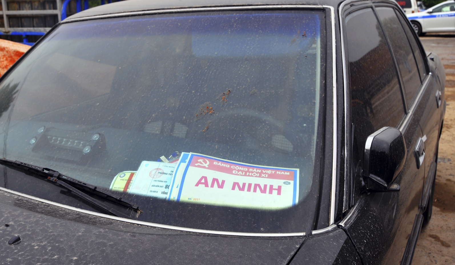 | Trên xe này gắn phù hiệu an ninh giả nhưng bị cảnh sát phát hiện. |