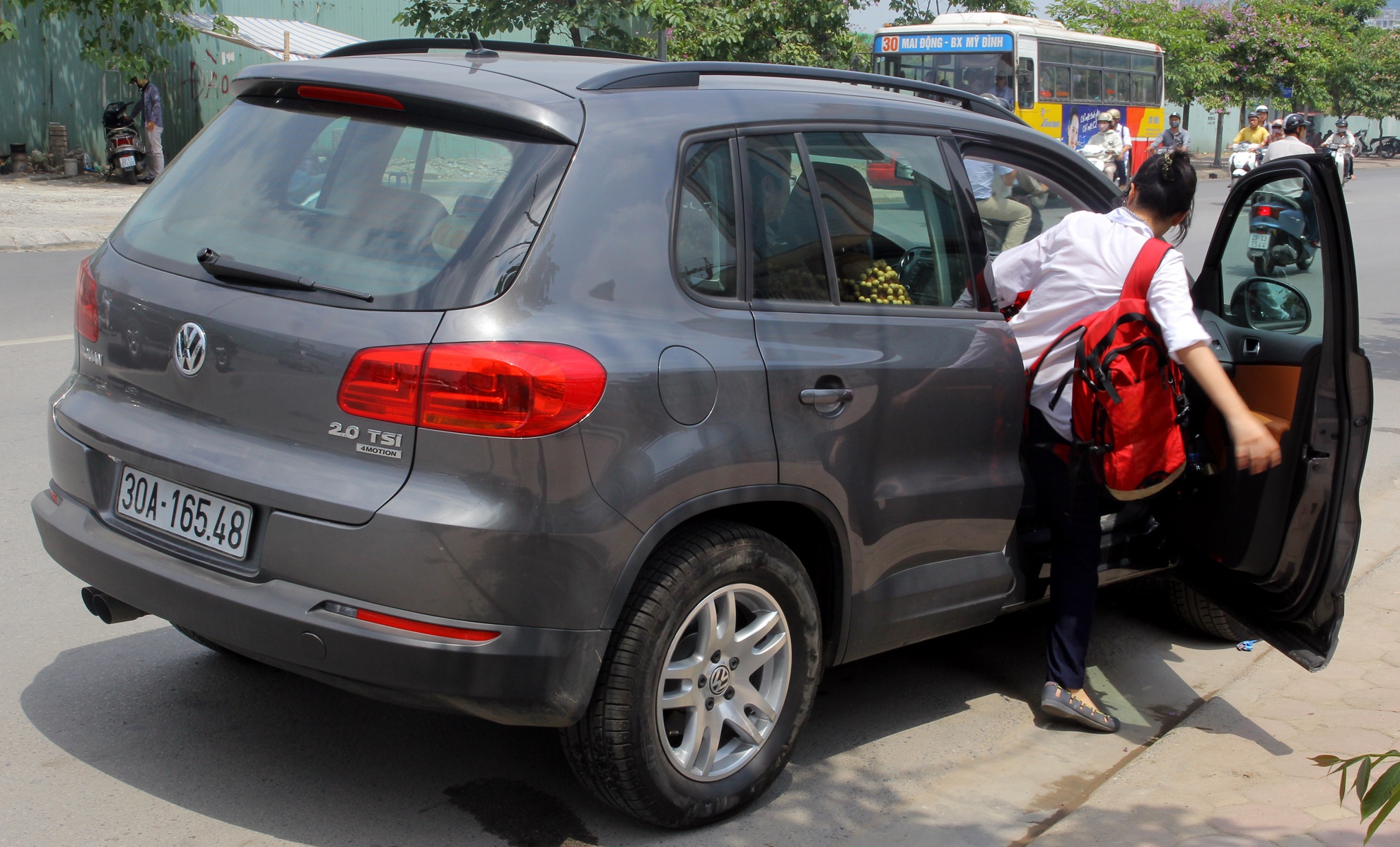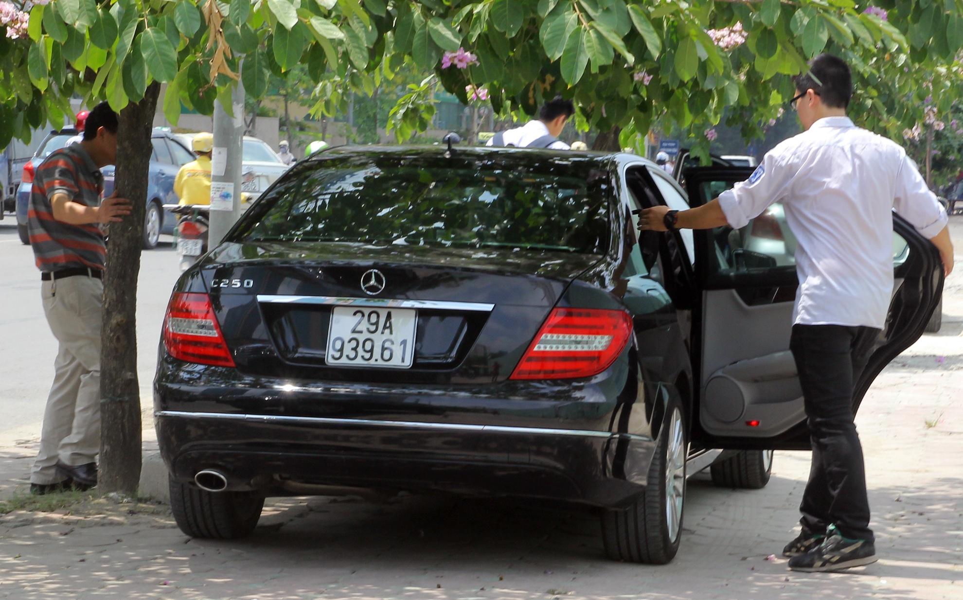 | Từ gần 10 giờ sáng 3/6, hàng dài ô tô, trong đó có nhiều xe sang, xếp hàng trước cổng trường THPT Chuyên Hà Nội - Amsterdam chờ các sĩ tử đang thi tốt nghiệp môn Toán. Một phụ huynh chạy chiếc Mercedes-Benz C300 AMG đến đợi con từ khá sớm. |