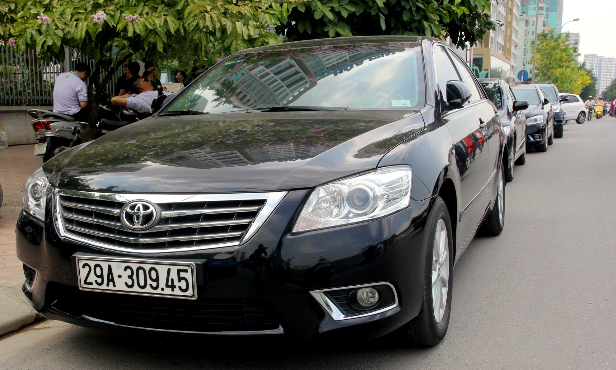 | Một thí sinh nữ được bố đến đón bằng xe Hyundai Sonata. |