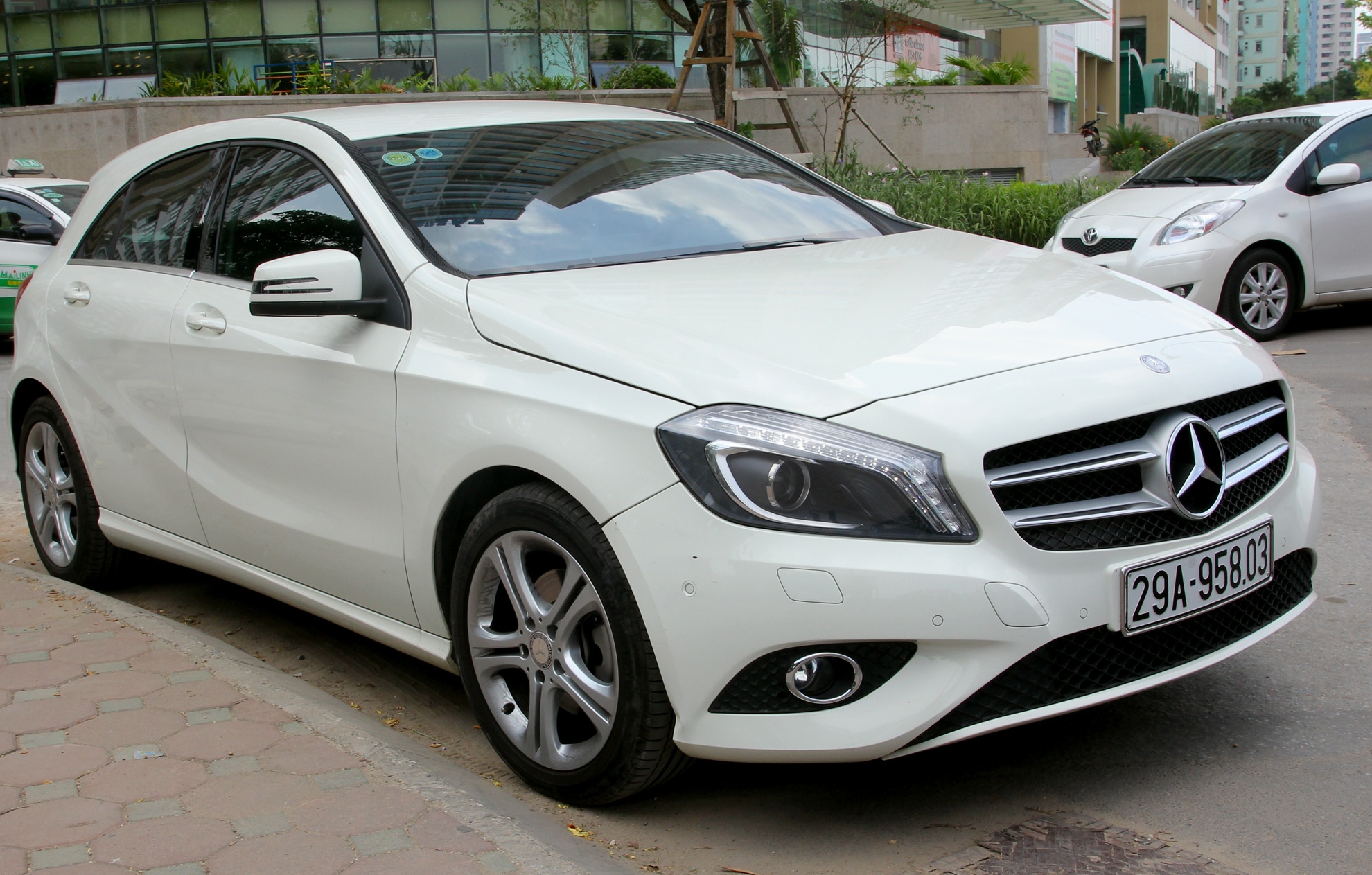 | Mercedes-Benz A200 màu trắng. Mẫu xe này có giá bán chính hãng khoảng 1,3 tỷ đồng. |
