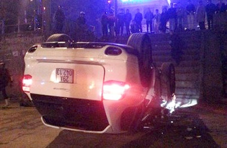 Chiếc xe hư hỏng nặng, phần trên nóc bị bẹp dúm, vỡ vụn, đèn xe vẫn sáng. Những người chứng kiến vụ tai nạn cho biết thêm, trước đó có một nhóm người ngồi phía dưới đốt củi sưởi ấm nhưng vừa dời đi thì chiếc xe rơi xuống.