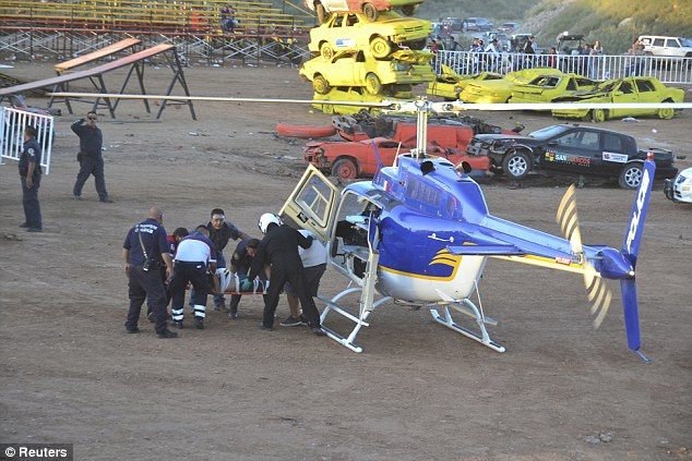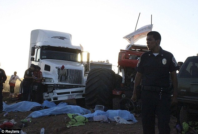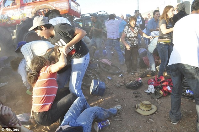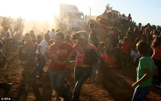 | Một chiếc xe cải tiến với những bánh có đường kính tới 1,5 m đã lao vào đám đông khán giả trong lúc nó đang trình diễn. Ảnh: Reuters. |
