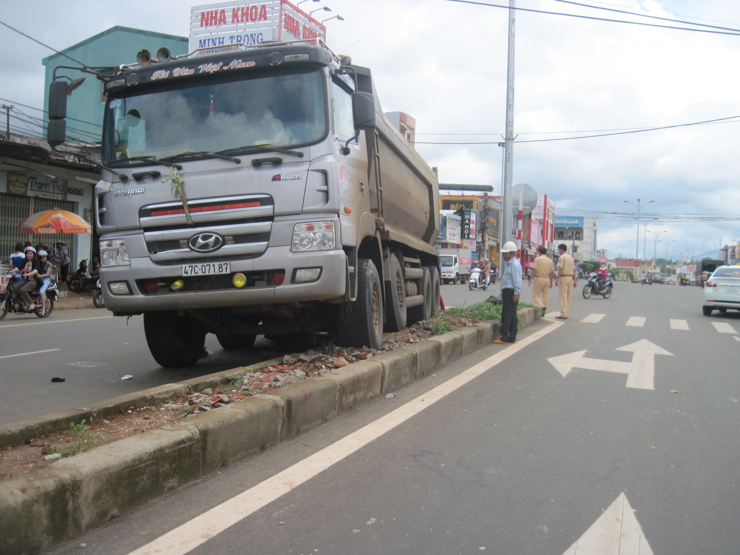 | Theo những người chứng kiến, chiếc xe tải đang chạy với tốc độ cao qua ngã ba Ea Kao thì bất ngờ chiếc xe máy ở bên kia sang đường. Do không làm chủ được tốc độ lại gặp tình huống bất ngờ, xe tải đã lao thẳng vào xe máy rồi kéo lê xe máy khoảng 5 mét. Không dừng lại ở đó, chiếc xe tải tiếp tục lao lên con lươn ở giữa đường kéo theo chiếc xe máy và hai người trên xe. Sau khi chiếc xe tải dừng lại, người dân lập tức đưa nạn nhân đi cấp cứu. |