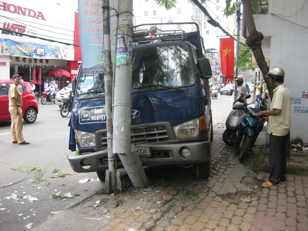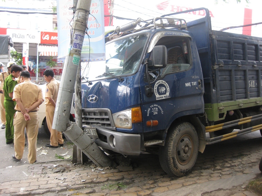Thời điểm trên, tài xế Nguyễn Quốc Huy điều khiển xe tải loại 1,9 tấn lưu thông trên đường Đinh Bộ Lĩnh hướng từ bến xe Miền Đông về Điện Biên Phủ. Khi vừa qua khỏi cầu Đinh Bộ Lĩnh, tài xế Huy phát hiện xe tải mất thắng, không dừng lại nên chạy loạng choạng.