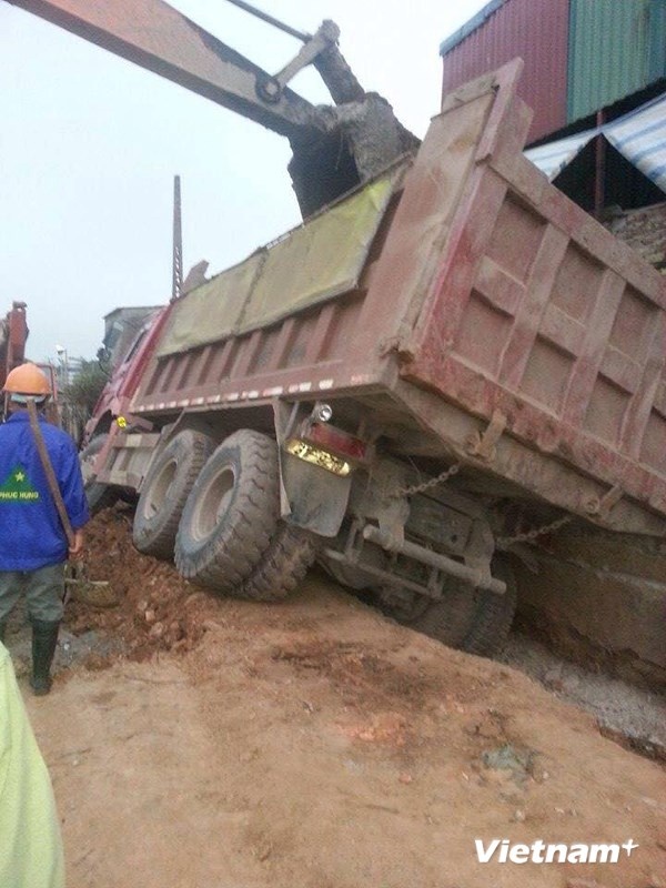 Chiếc xe tải mang biển số 31F-9210. Đơn vị thi công chịu trách nhiệm về sự việc là Công ty cổ phần Đại Kim. Hiện, lái xe cùng các bên có liên quan đã làm việc với Ủy ban nhân dân phường Hạ Đình.
