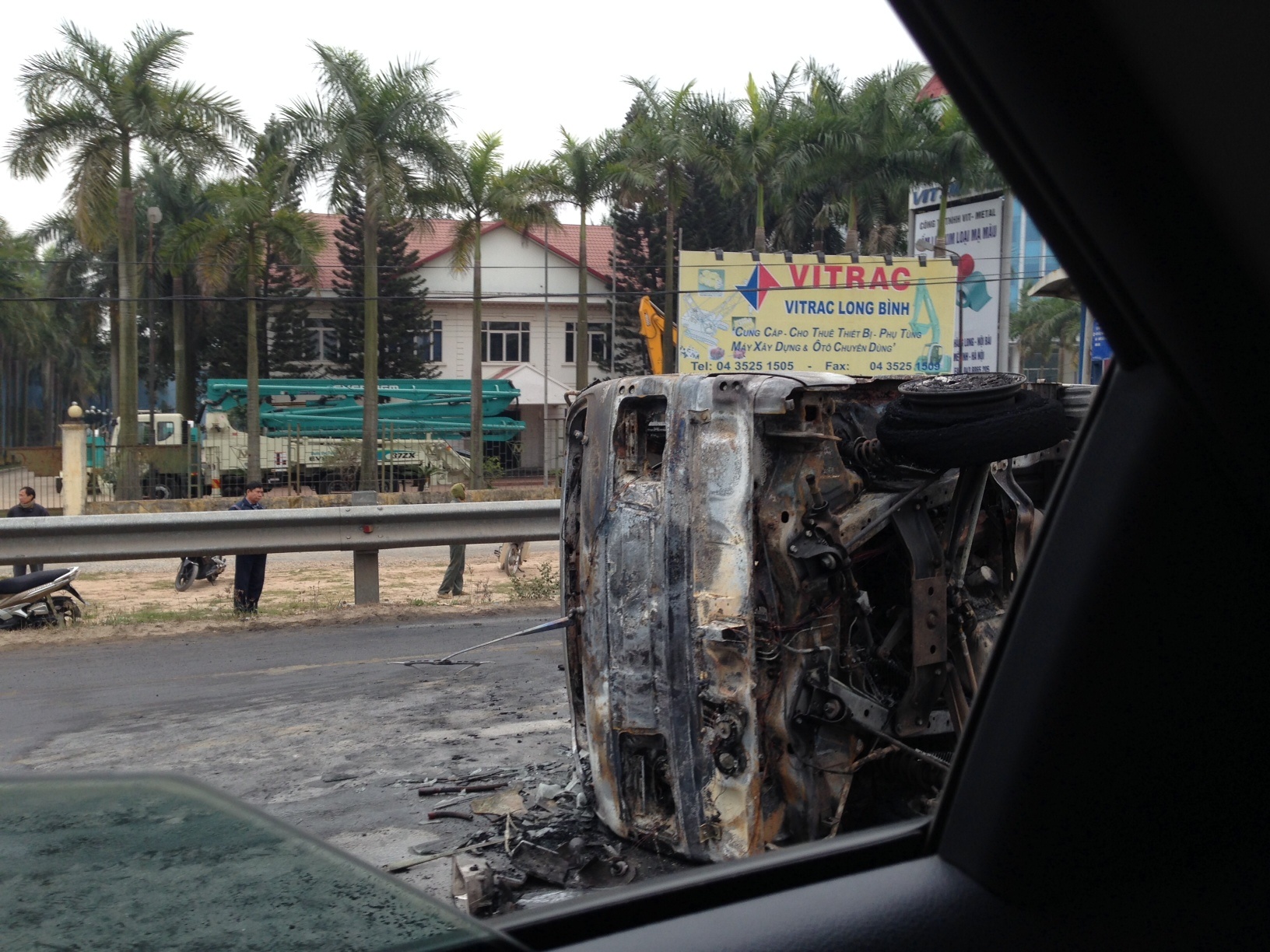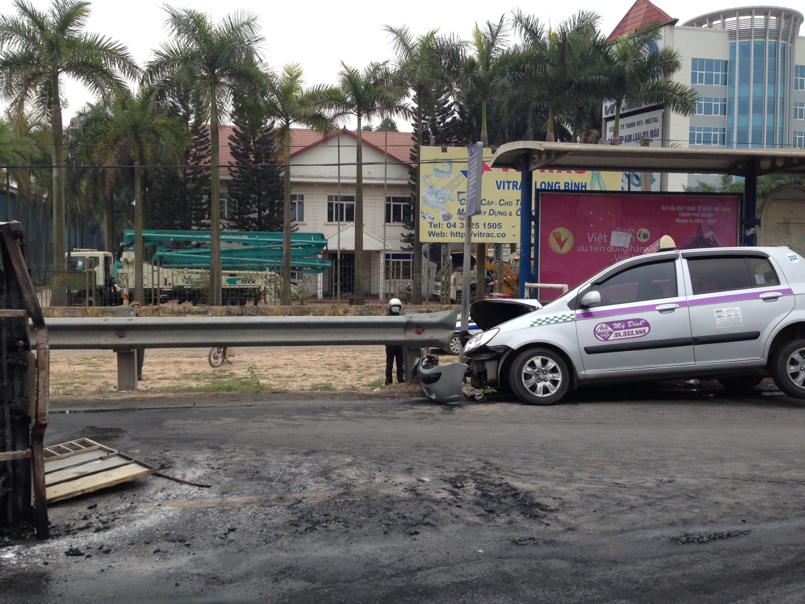 | Vụ tai nạn khiến các phương tiện phải dừng lại, chiều đi Nội Bài bị ùn ứ và gặp khó khăn. Nhận được tin báo, lực lượng PCCC và CSGT đã có mặt tại hiện trường để xử lý vụ việc. Để khắc phục tình trạng ùn tắc kéo dài, cảnh sát giao thông đã hướng dẫn các phương tiện đi sang làn đường đối diện. |