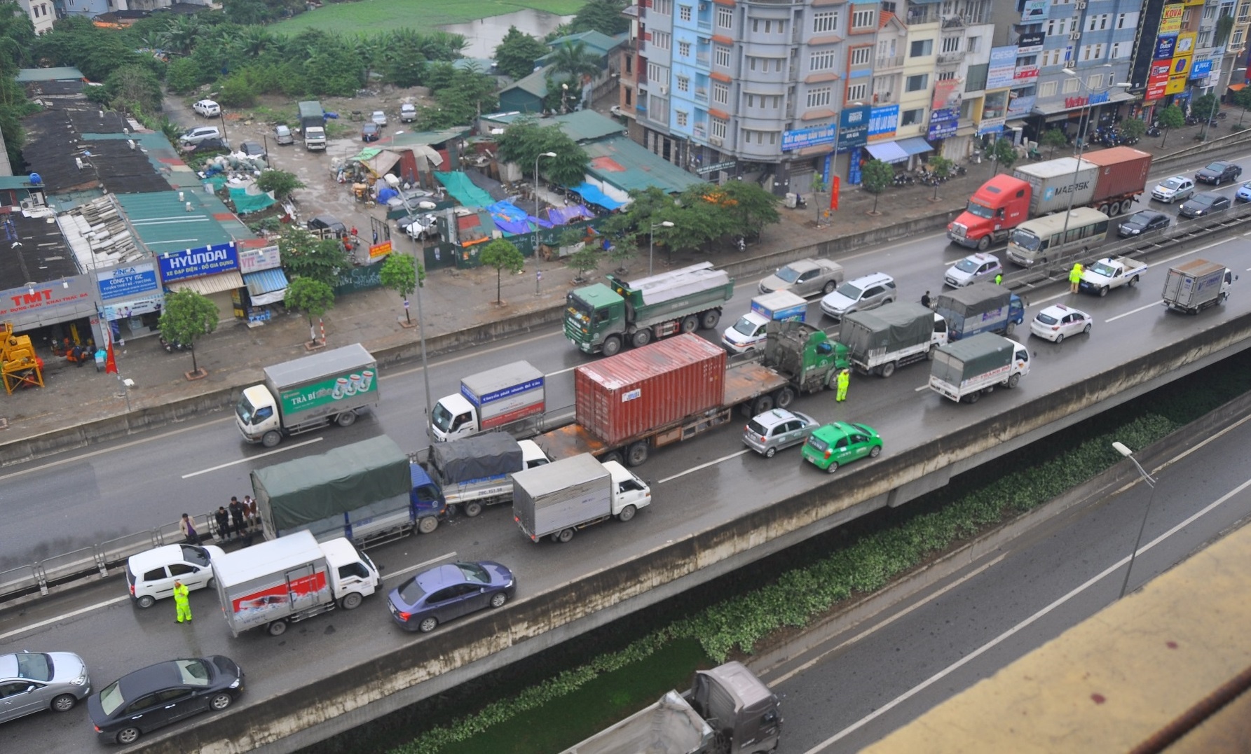 | Lãnh đạo đội CSGT số 7 cũng cho biết, vụ tai nạn khiến các phương tiện từ đại lộ Thăng Long di chuyển lên đường trên cao ra quốc lộ 1A không thể di chuyển. Tuyến này ùn tắc hơn 1 km. |