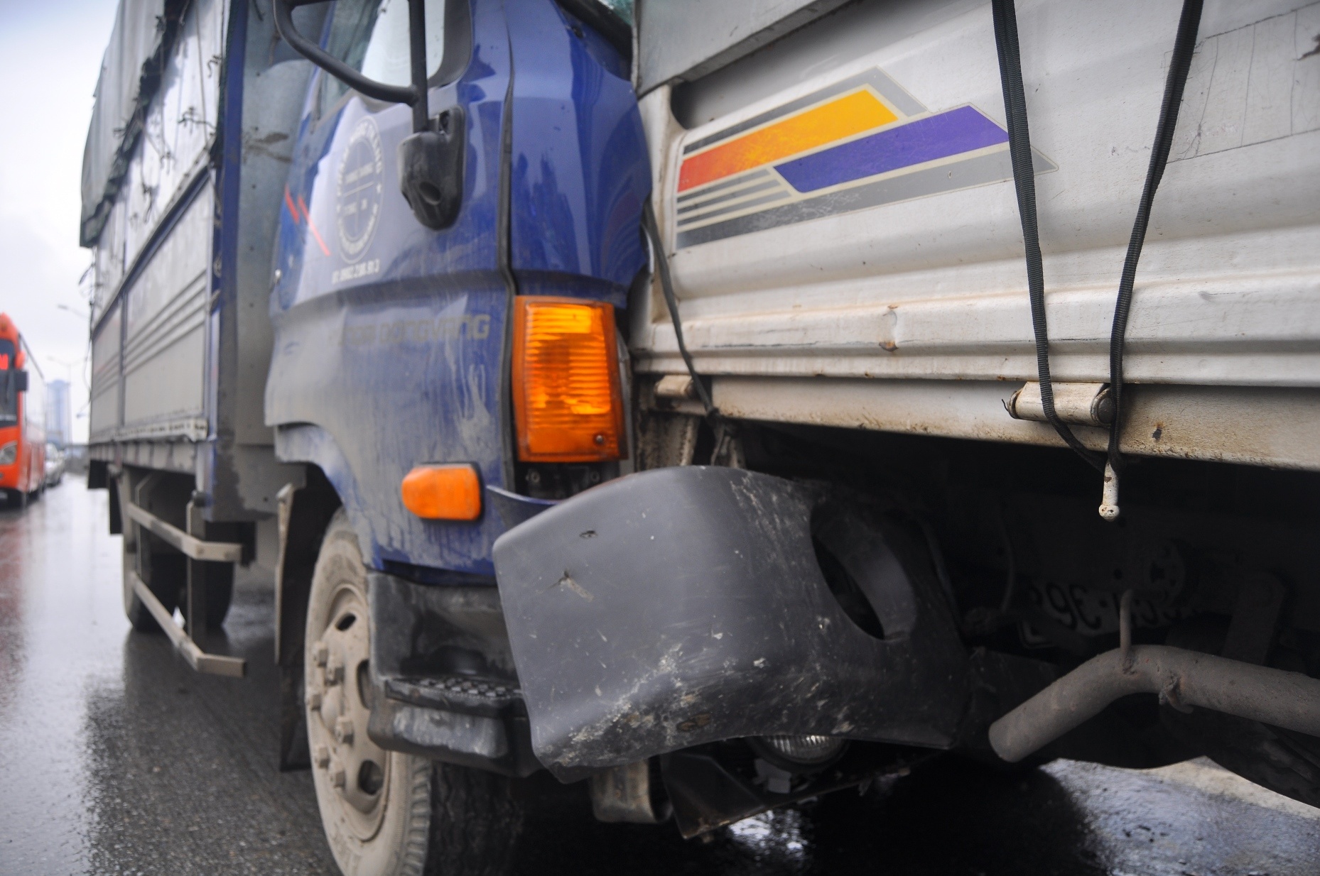 | Anh Nguyễn Văn Trường (30 tuổi, tài xế xe tải 1,25 tấn biển kiểm soát tỉnh Bắc Ninh) cho hay, chiếc xe tải phía trước anh bất ngờ đánh lái, tạt đầu và phanh gấp khiến anh không kịp trở tay. Xe anh tông vào xe này khiến container và hai xe tải nhỏ phía sau đâm liên hoàn. |