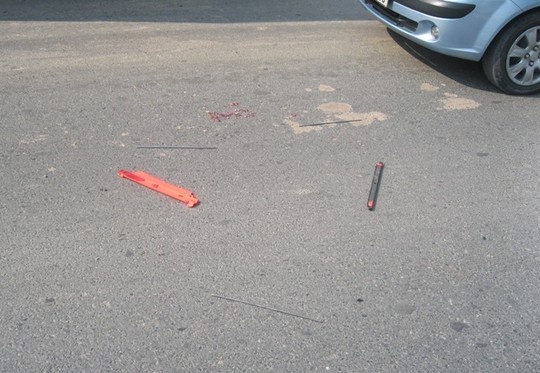 | Vật cảnh báo bị chèn vỡ nát. |