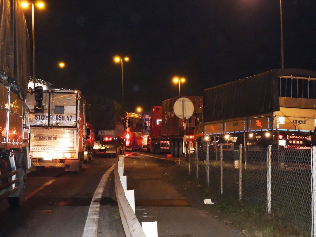 Đến hơn 23h ngày 15/1, tình trạng kẹt xe vẫn kéo dài từ cầu Mỹ Thuận (phía bờ Vĩnh Long) đến cổng chào TP Vĩnh Long sau vụ tai nạn này.