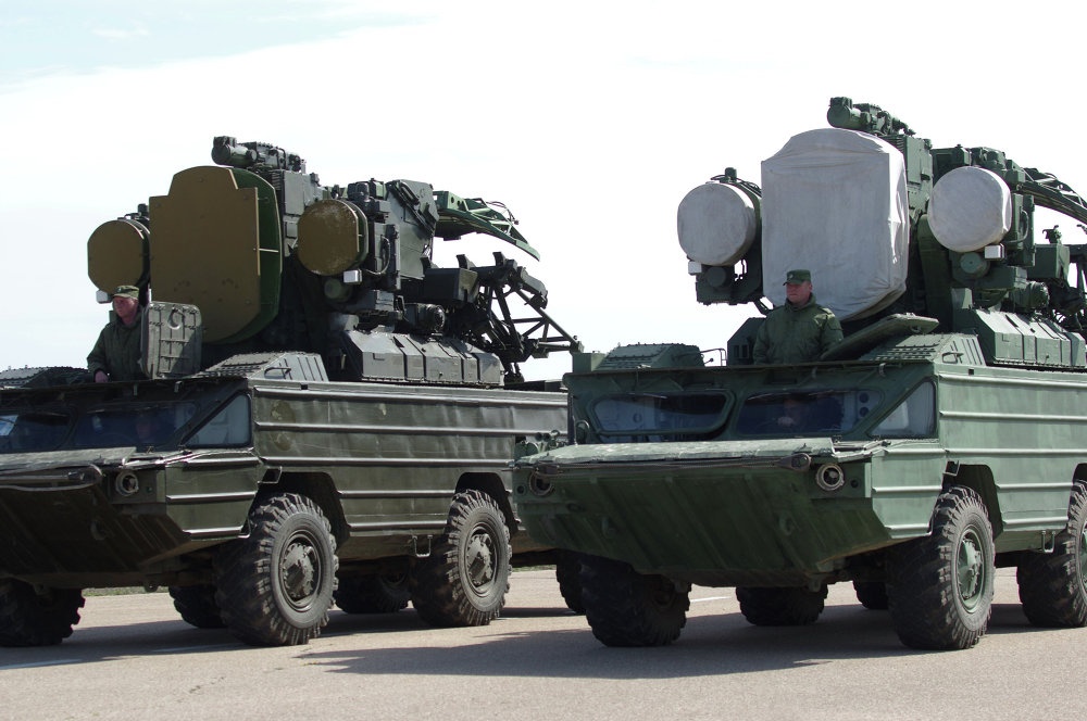 Pháo Msta-B tại buổi tập. Gần 40 vũ khí và thiết bị quân sự xuất hiện trong sự kiện tại Sevastopol, bao gồm xe bọc thép BTR-80, tàu tên lửa chống hạm lớp Osa, hệ thống tên lửa phòng thủ bảo vệ bờ biển Bastion, tên lửa phòng không S-300 và nhiều loại pháo khác.