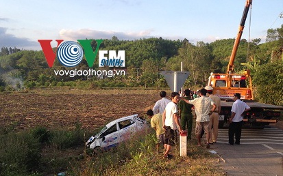 Khi xe đến tổ 6 (thị trấn Khánh Vĩnh, huyện Khánh Vĩnh, tỉnh Khánh Hòa) thì bất ngờ mất lái, lao lên vỉa hè bên phải rồi “bay” xuống ruộng gần đó rồi lật ngửa.