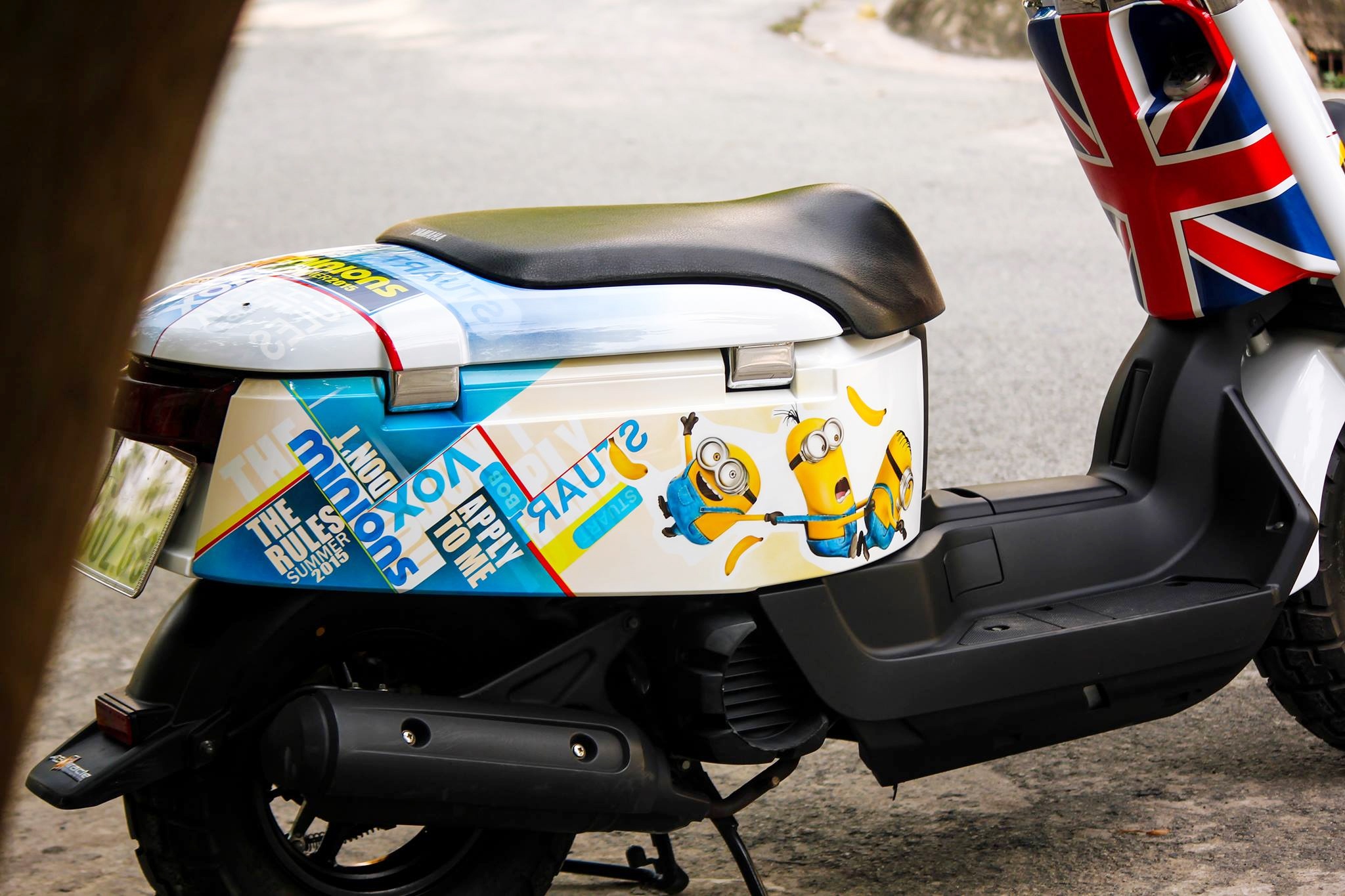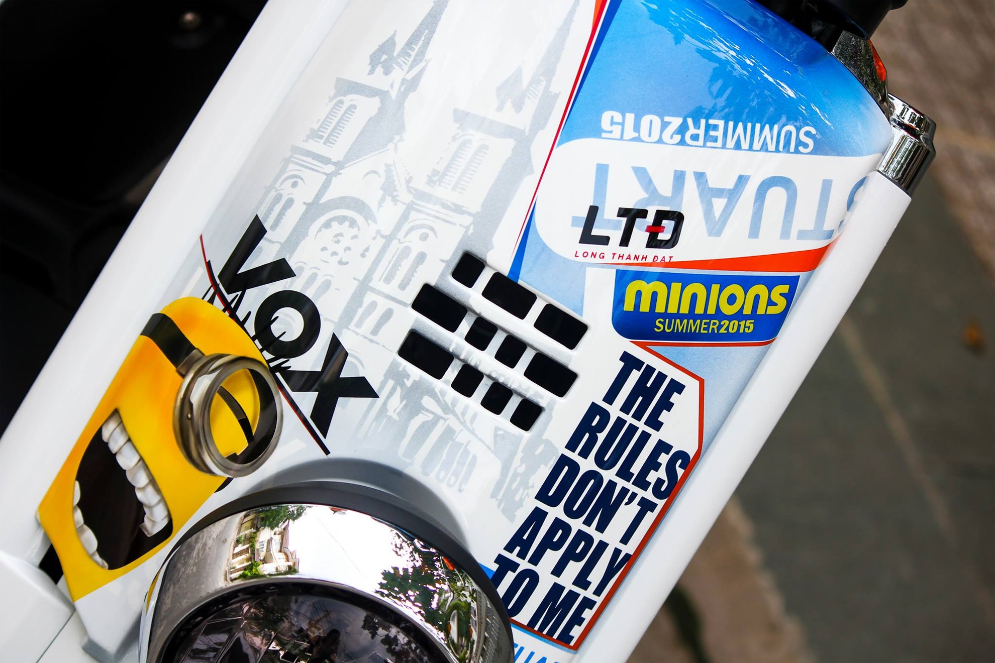 Chiếc Yamaha VOX được vẽ airbrush dàn áo, với các họa tiết lấy ý tưởng từ phim hoạt hình bom tấn Minions.